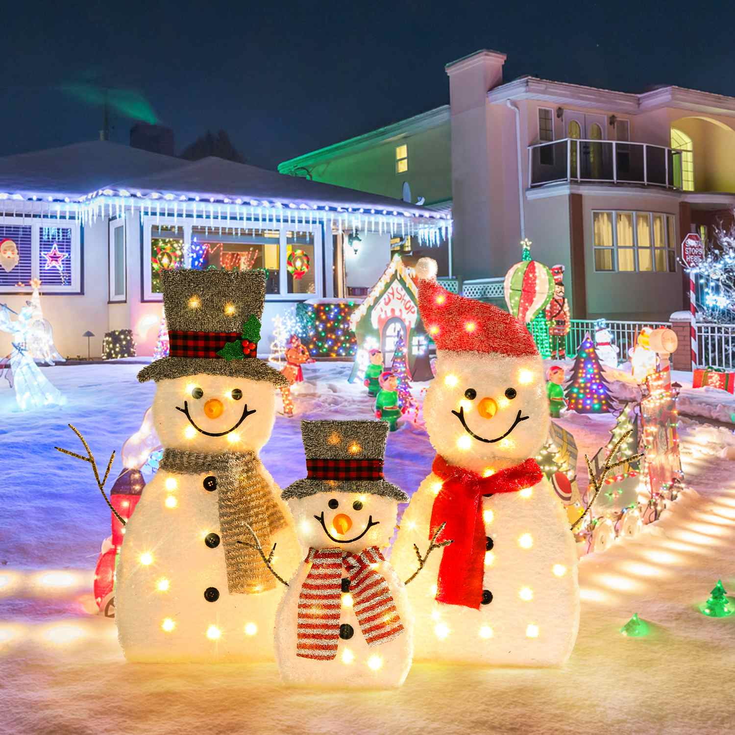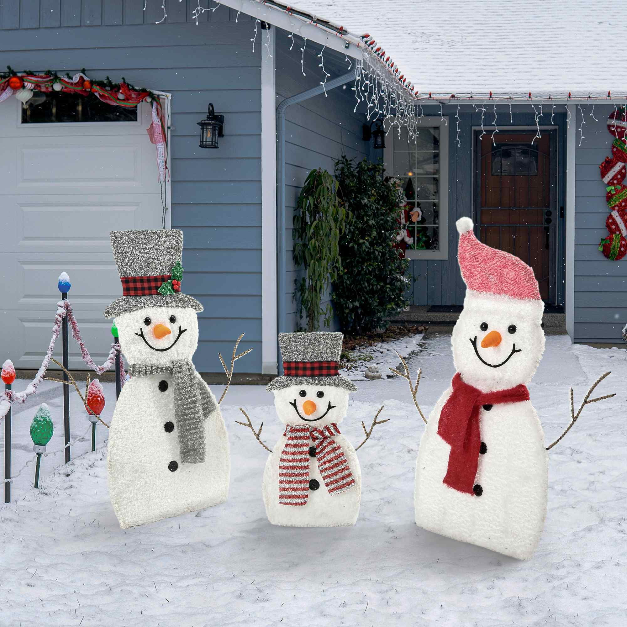 DEORAB Outdoor Christmas Lighted Snowman Decorations 2D 3-Piece Holiday Garden Lawn Yard Light-up Xmas Decor,70LED Lights