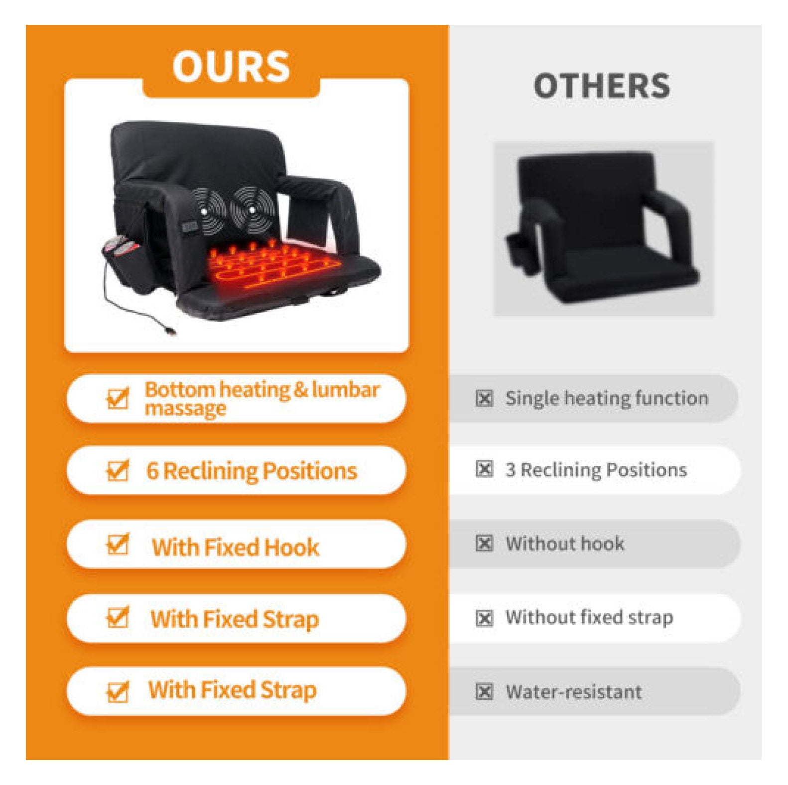 Depot Esh Reclining Heated Massage Stadium Seat , 21″ / 25″ Wide Back Support Chair