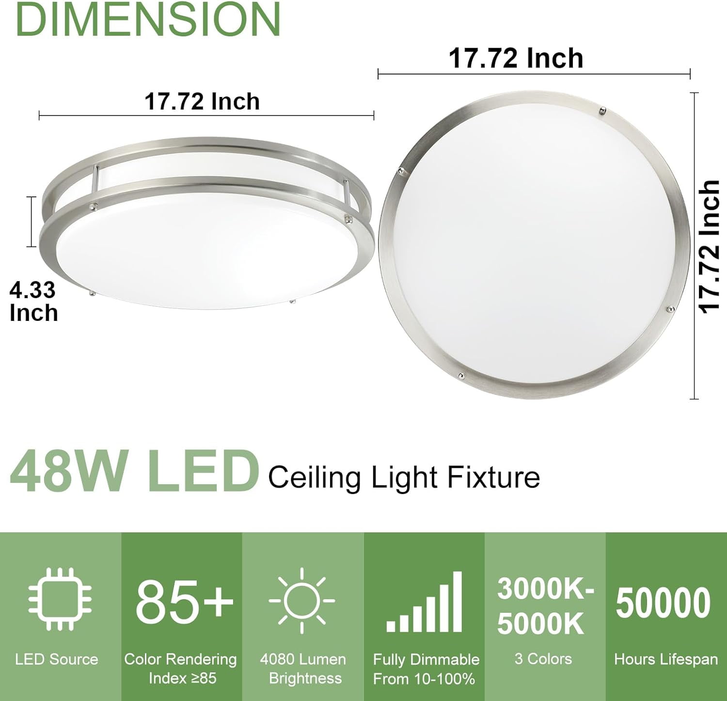 Material: Aluminum, Metal, Acrylic Room Type: Kitchen, Living Room, Bedroom, Hallway Product Dimensions: 19.49″L x 4.53″W x 19.76″H Special Feature: Dimmable Control Method: Remote Light Source Type: LED Voltage: 120 Volts Shape: Round Wattage: 48 watts Item Weight: 5.72 pounds Luminous Flux: 4080 Lumen Color Temperature: 6000 Kelvin Color Rendering Index (CRI): 85.00
