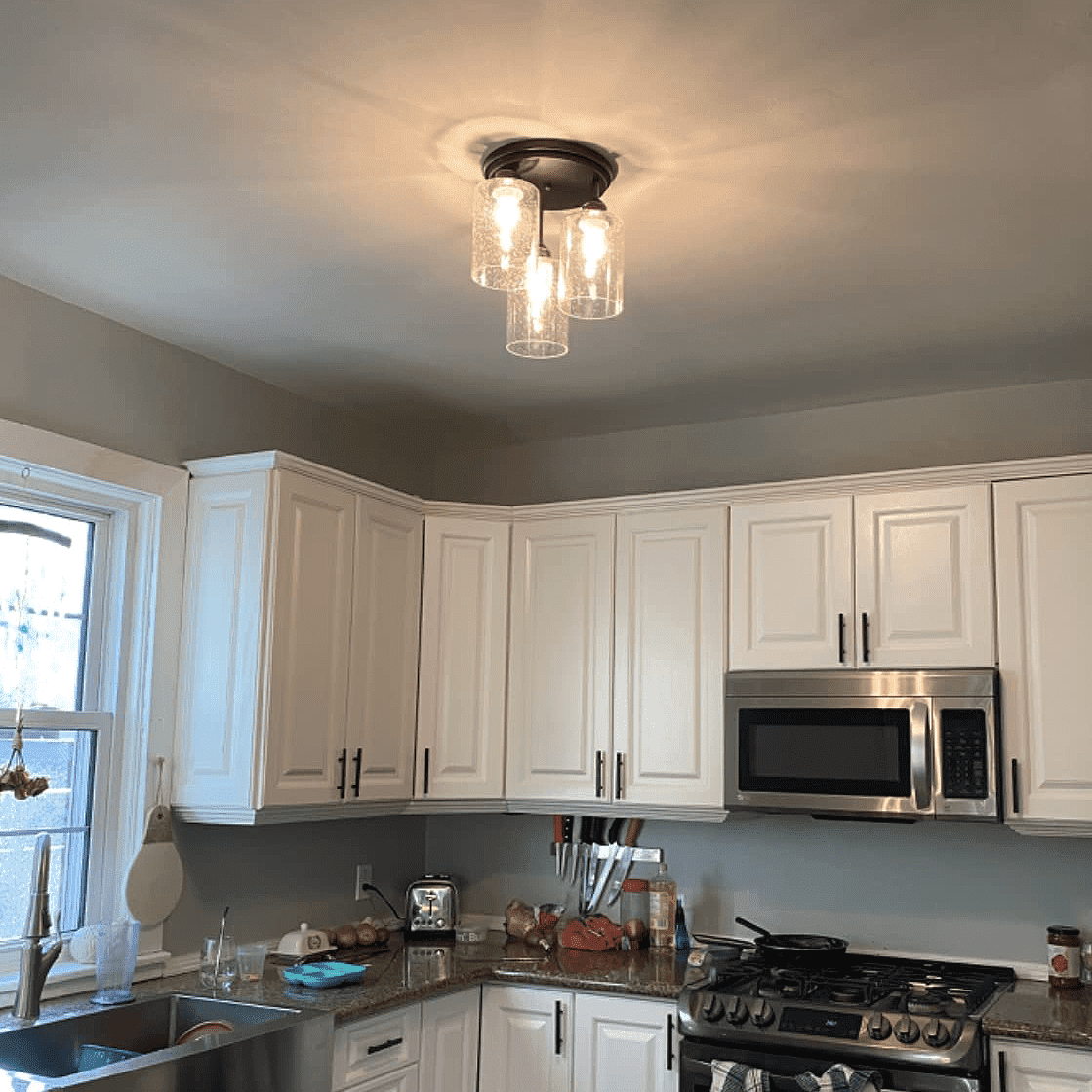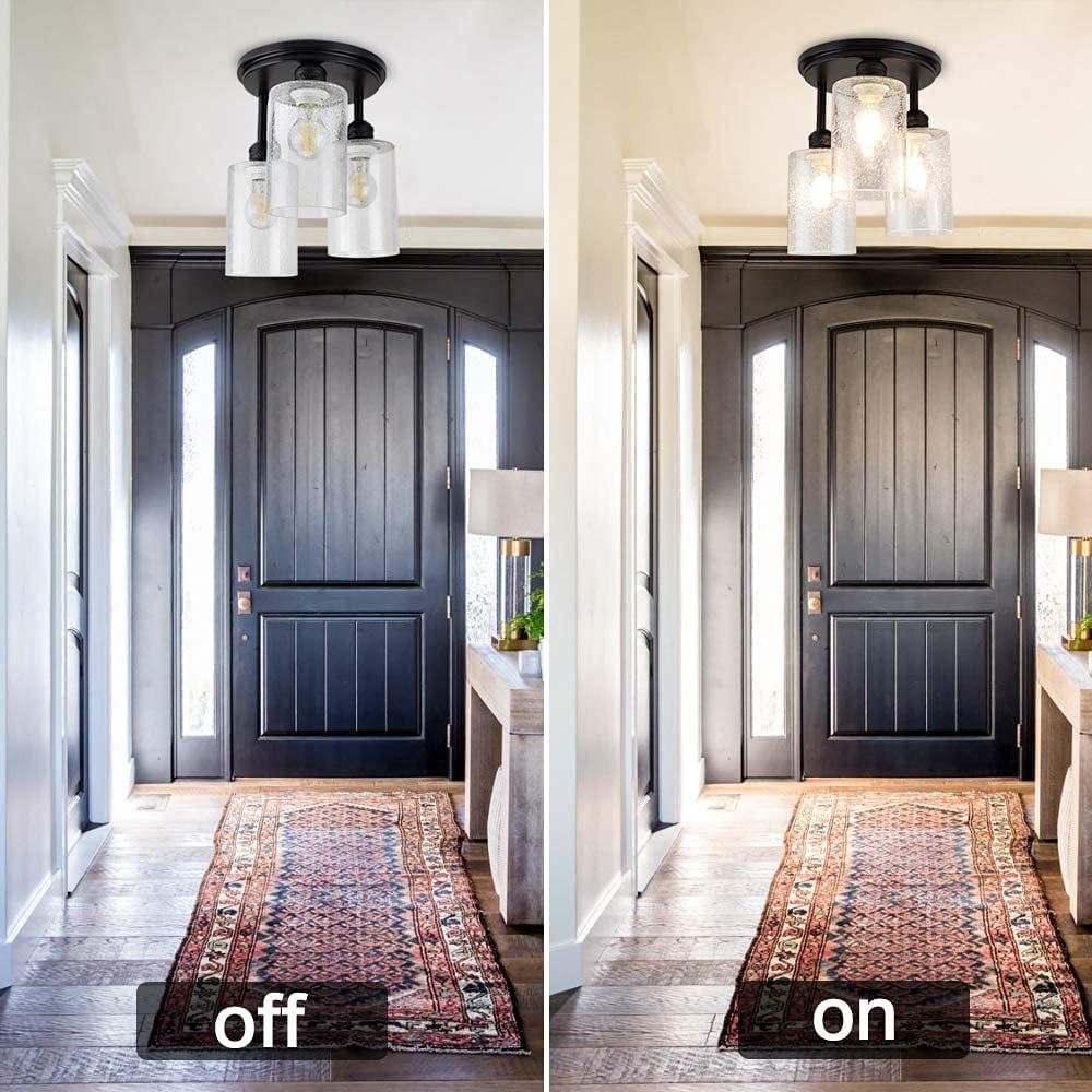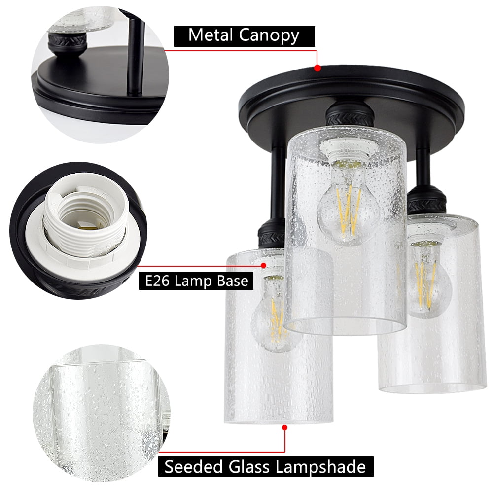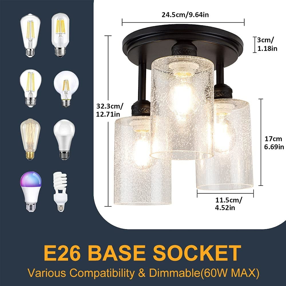 Why choose US Focus on LED Lighting over 12 years, owned factory, professional R&D and support team High Quality performance Super Bright but Energy Saving High Color Reflection, reflect real color and Protect your eyes Quick Response Customer Service This versatile 3-light ceiling light fixture from Depuley features a rustic semi-flush mount design with a vintage look blended with industrial and contemporary elements. The clear glass shade has a soda water bubble design, creating a sparkling and eye-catching light effect. Compatible with E26 socket, this dimmable fixture can be used with LED, incandescent, or CFL bulbs (not included) to easily adjust the lighting and create the desired atmosphere in your living room, dining room, bedroom, or entryway. With its high-quality glass and iron base, this ceiling light is designed to be durable and anti-corrosion, making it a perfect addition to your home’s decor in rustic, urban, vintage, or industrial settings. Rustic Design: This flush mount light combine vintage design with industrial and contemporary elements. The glass lampshade adds design elements like soda water bubbles, emitting a sparkling light. Wide application: This glass pendant light suit with any decoration, perfecting for rustic, urban, vintage and industrial settings. And it is also ideal for business districts: bars, cafes, hotels and restaurants. Dimmable: The hallway ceiling light fixture can dimmable with compatible dimmer switch. You can use a dimmable bulb, to adjust and enjoy the soft illumination, created the atmosphere you want.(dimmer switch sold separately) Bulbs Requirement: The farmhouse light fixtures apply US standard E26 bulb sockets, compatible with various bulbs, such as LED, INCANDESCENT, CFL. You can choose different light bulbs to decorate your warm and comfortable home. Support up to 3*60 watts maximum.(For safe transportation, bulbs are not included.) Durable: Canopy diameter: 9.64 inches, overall size (W*H): 9.7*12.71 inches. The exquisite glass lampshade is made of high-quality glass, which is resistant to high temperatures and has a long service life; the high-quality iron base is treated with powder spraying technology, anti-corrosion, non-rusting, and durable. Easy Install: This flush mount ceiling light Includes all mounting hardware for quick and easy installation. Customer Service: We provide 12 months quality assurance for our products. If you have any questions about products and need our help, please feel free to contact us. Product Details: Brand Depuley Color Black Material Metal,Glass Style Modern / Farmhouse / Industrail Light fixture form Flush Mount Ceiling Package includes:(Please Check all part list in the Instruction. If there missing a instruction, please contact us, we will try to send you an digital Instuction by email online) Flush Mount Ceiling light panx1 Glass Lamp shade x3 Component pack x1 Install Instrution x1 Warm tips: If you don’t know how to install the light or fan, please refer to a licensed electrician. We would contain installation video and setup progress in the instruction. Please cut off the electricity supply before you install it. Please install in the dry environment. Please feel free to contact us with any questions. Our customer service team will reply as soon as possible.