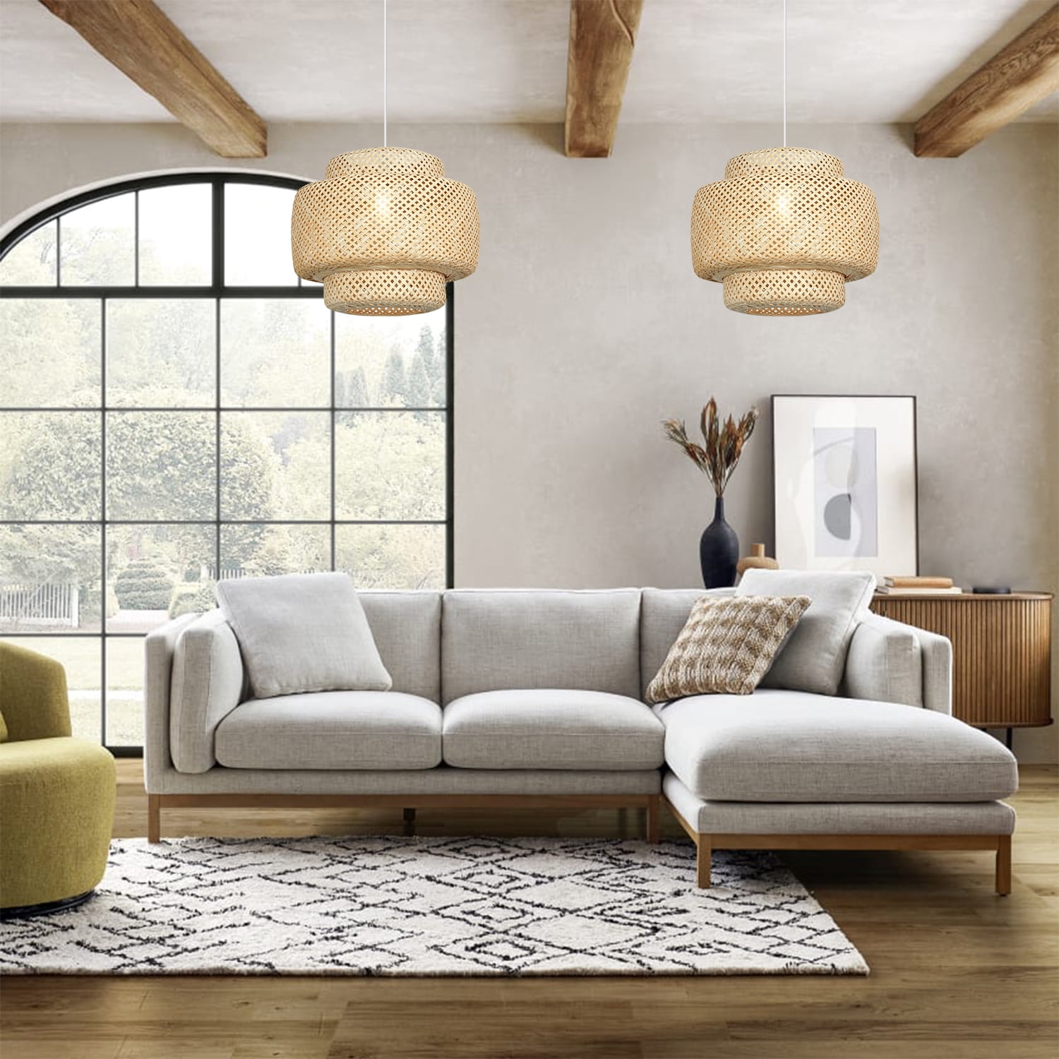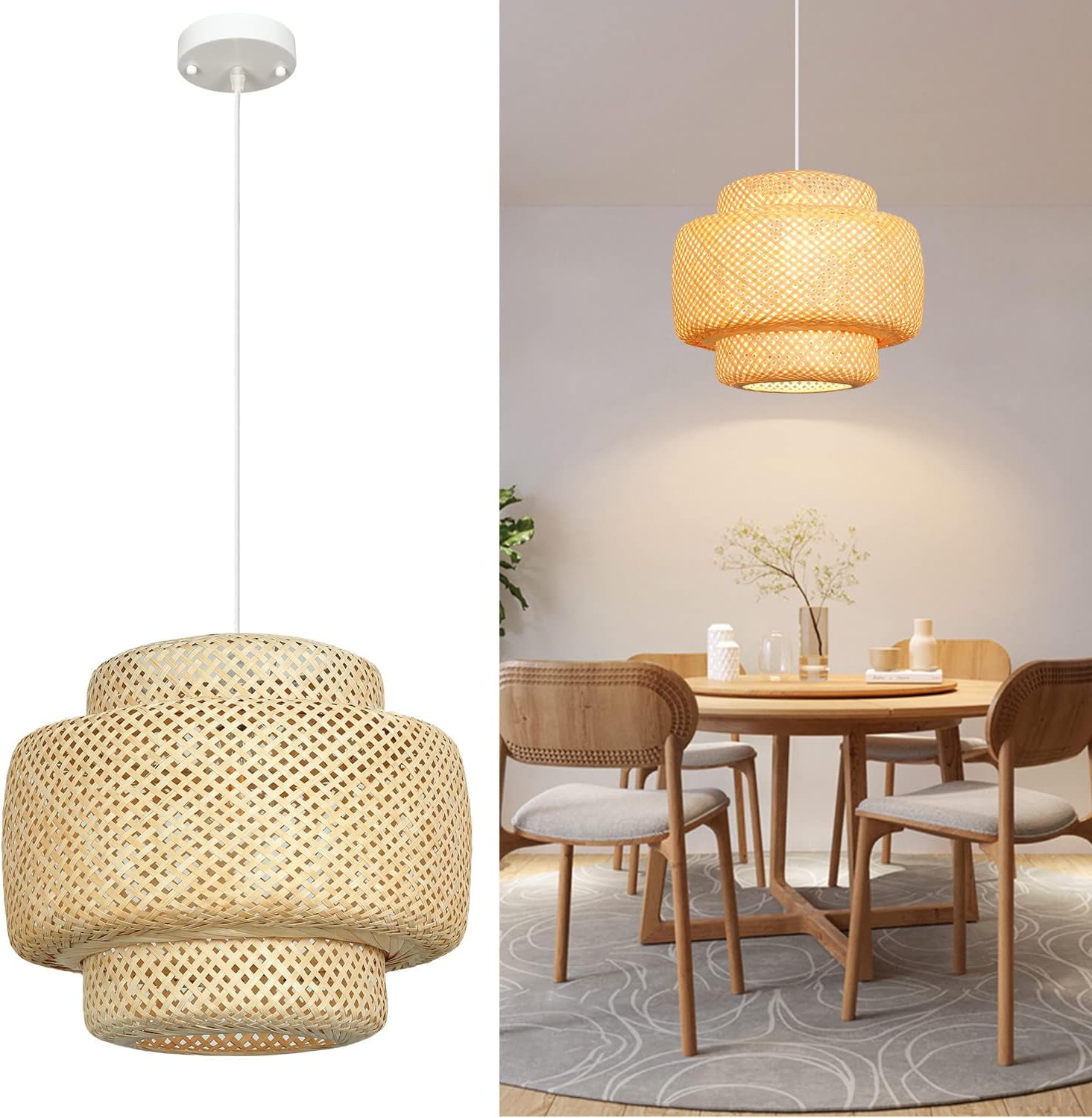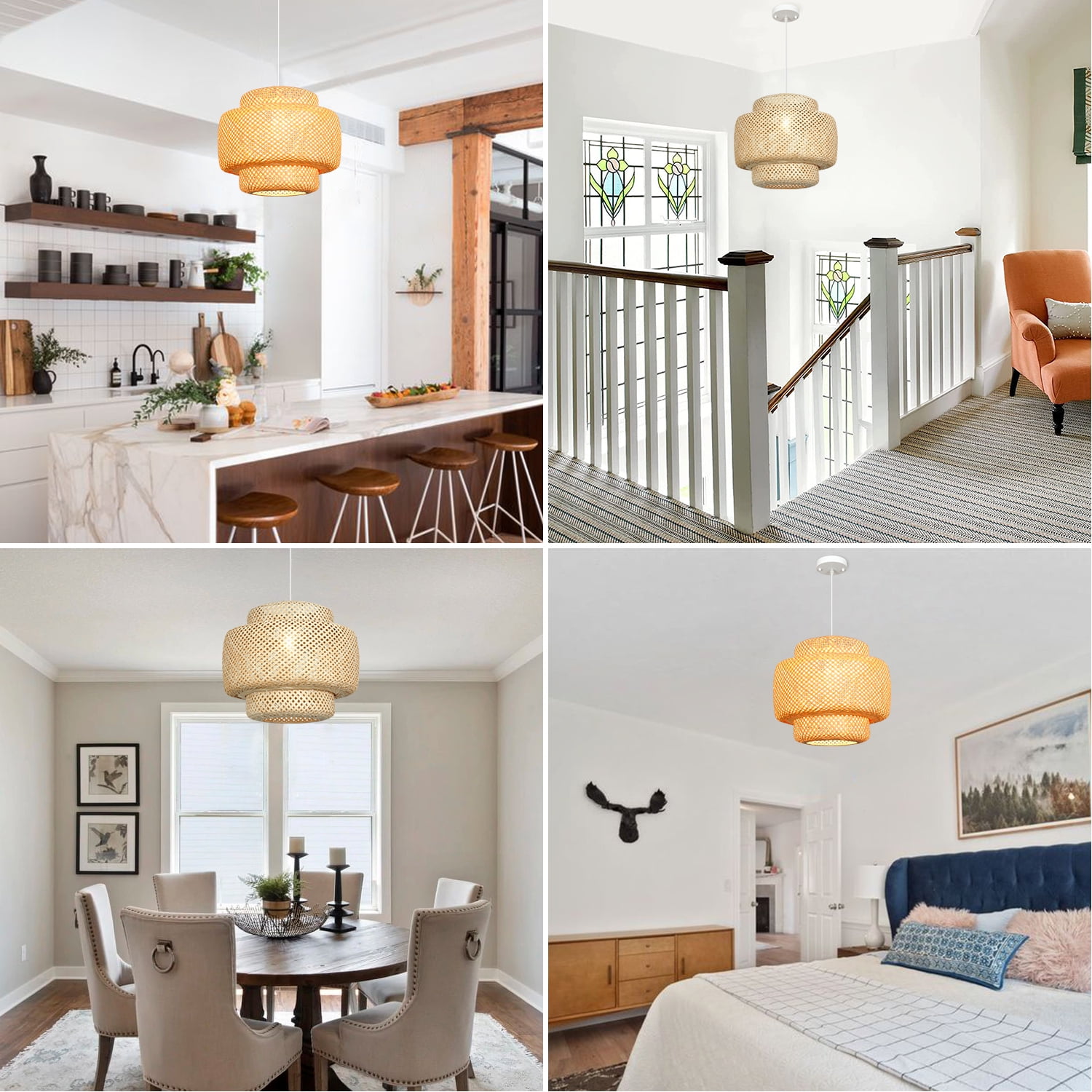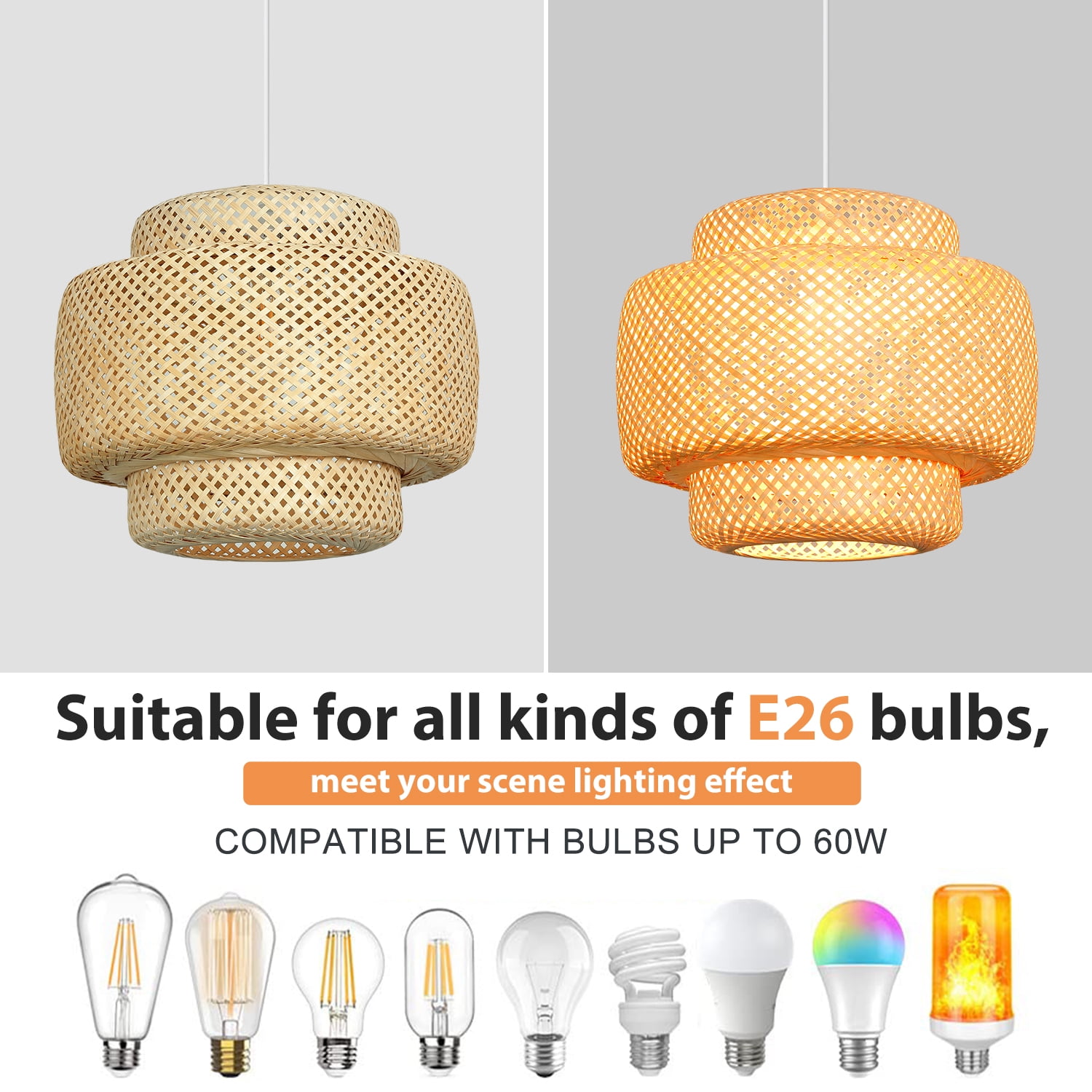 ⭐Why choose US Focus on LED Lighting over 12 years, owned factory, professional R&D and support team High Quality performance Super Bright but Energy Saving High Color Reflection, reflect real color and Eye-caring Quick Response Customer Service UL Listed: This bamboo pendant light is UL Listed, ensuring top-notch safety performance and energy efficiency. Enjoy peace of mind with a high-quality, reliable light fixture. Natural Bamboo Material: Expertly crafted from natural bamboo, each shade is meticulously hand-woven, providing high temperature resistance, corrosion resistance, and exceptional durability. The unique rattan lampshade, with its natural features, is an eye-catching addition to any space. Elegant Design: The outer wood rattan cage displays lovely natural color and high-end look. The artistic hand-crafted touch enhances the aesthetic appeal, making it perfect for both modern and rustic interiors. Wide Application: The domed shape and natural bamboo design make this pendant light ideal for various settings, including kitchen islands, dining tables, sofas, hallways, cafes, basements, corridors, stairs, bars, offices, entrances, and bedrooms. Adjustable Height: Featuring a maximum cord length of 52.75 inches, this pendant light can be adjusted to suit your preferences and design needs, allowing for versatile installation options. It comes with a US standard E26 socket, compatible with various bulbs (Max: 60W), including LED, incandescent, and CFL bulbs. (Please Note: Bulbs not included) Easy Installation: Designed for quick and easy installation, this pendant light can be set up in approximately ten minutes. The hanging cord is adjustable from 0 to 52.75 inches to fit your desired height. Guaranteed: We offer 12 months warranty. If you have any questions or need assistance, please feel free to contact us.