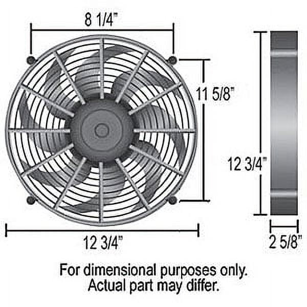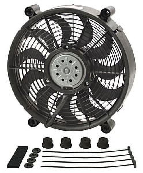 Electric Cooling Fan – HO RAD – 12 in Fan – Push / Pull – 1450 CFM – Curved Blade – 12-3/4 in Square – 2-5/8 in Thick – Install Kit – Plastic – Kit.