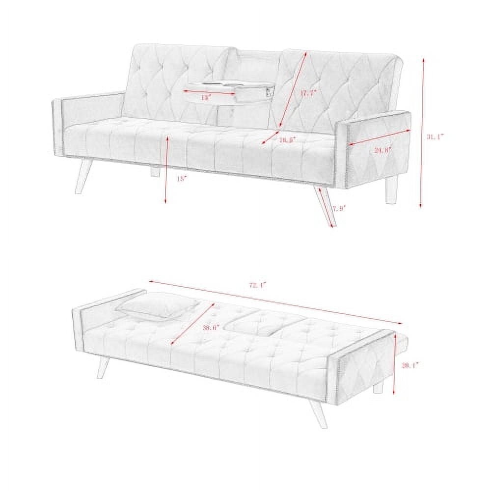 Derzers Futon Modern Velvet Convertible Sofa Bed with 2 Cup Holders, Pink Convertible Design: Easily switch from a stylish sofa to a comfortable bed, perfect for overnight guests Adjustable Backrest: Features 3 adjustable positions for personalized comfort, whether sitting or lying down Strong and Durable: Constructed with a sturdy wood frame wrapped in supportive foam and durable velvet fabric, supporting up to 500 pounds Comfortable Seating: High elastic foam filling in the seat cushion provides excellent support and quickly recovers after use Easy Assembly: All parts can be assembled in just a few minutes; installation instructions included