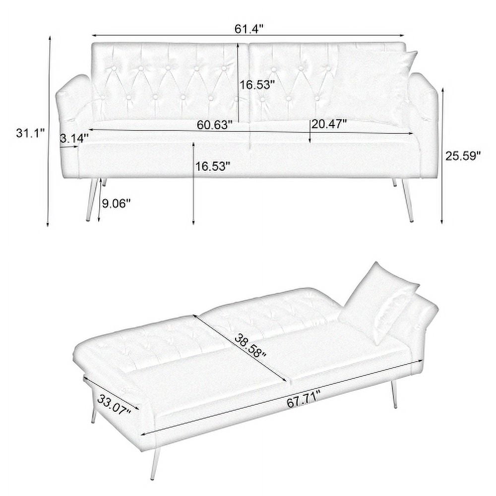 ?Adjustable Futon Sofa Bed?: With a simple folding contraption, you can convert this faux leather sofa into a large lounger with a reclined back or a comfortable bed in a snap. ?High Quality Material?: Loveseat sofa selected materials is comfort and durability?faux leather which is soft-to-the-touch offer extra comfort and is easy of cleaning as well. ?Small space Friendly?: This folding sofa is perfect for the modern-day living room, ideal for small apartments, studios, offices, dorms, condos, cramped living rooms, and other limited spaces. ?Multi-functional Design?: Multi-gear armrest design meet your different needs and provide different comfortable arm support. It can act as a headrest, when he becomes a sofa bed. ?Easy Assembly?: All hardware is included in the package, no additional tools are required. With the help of detailed instructions, you can easily assemble.