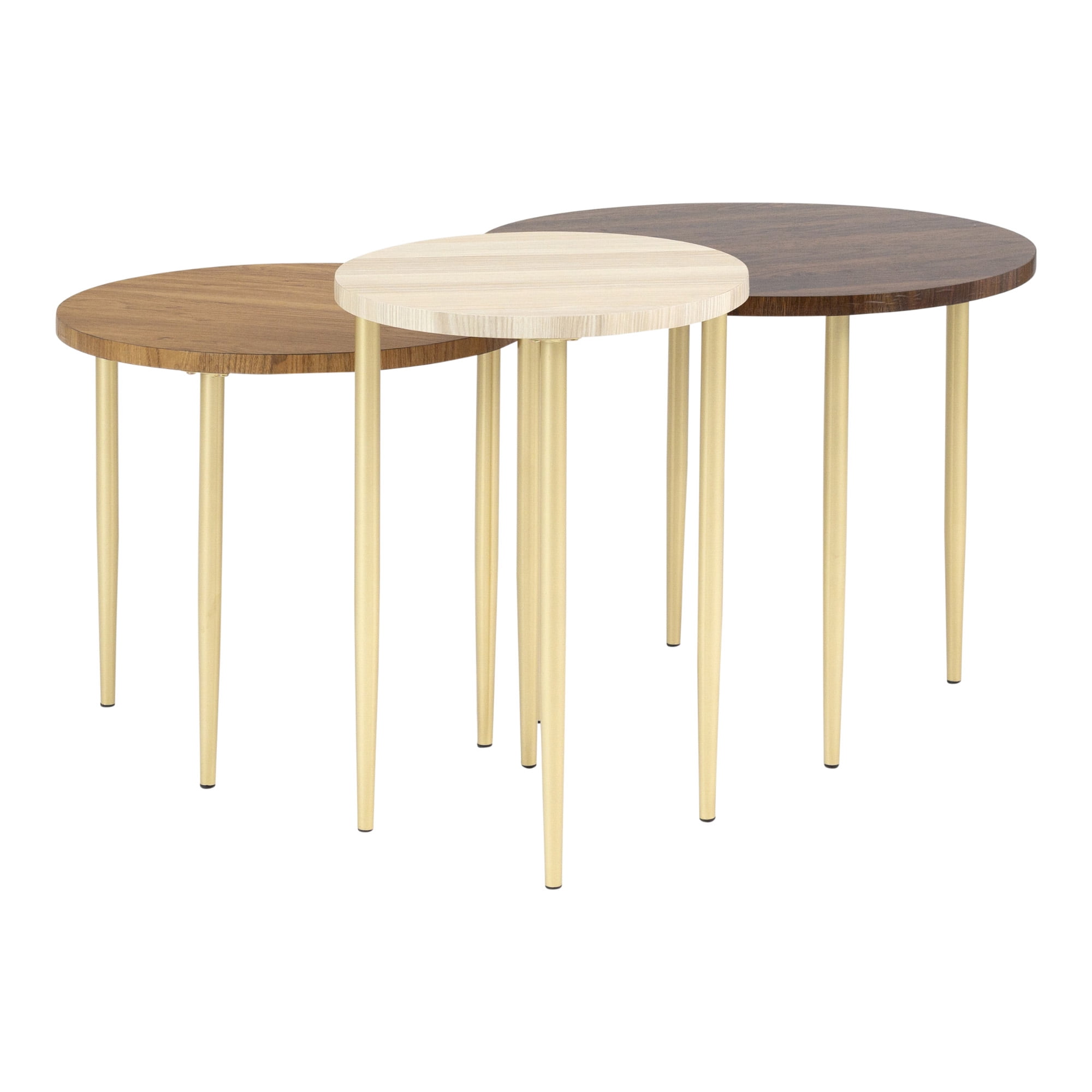 Let your free spirit run wild in your living room with the Desert Fields Camelia 3-Piece Nesting Coffee Table Set. Three complimentary finishes add variety and excitement to your bohemian interior design. Place them together as an eccentric coffee table or use them separately as side tables for some versatility. Made from high-quality MDF, durable laminate, and powder-coated metal, this nesting coffee table set will be a staple in your home for years to come. Highlight your great taste in decor with the Desert Fields Camelia 3-Piece Nesting Coffee Table Set.