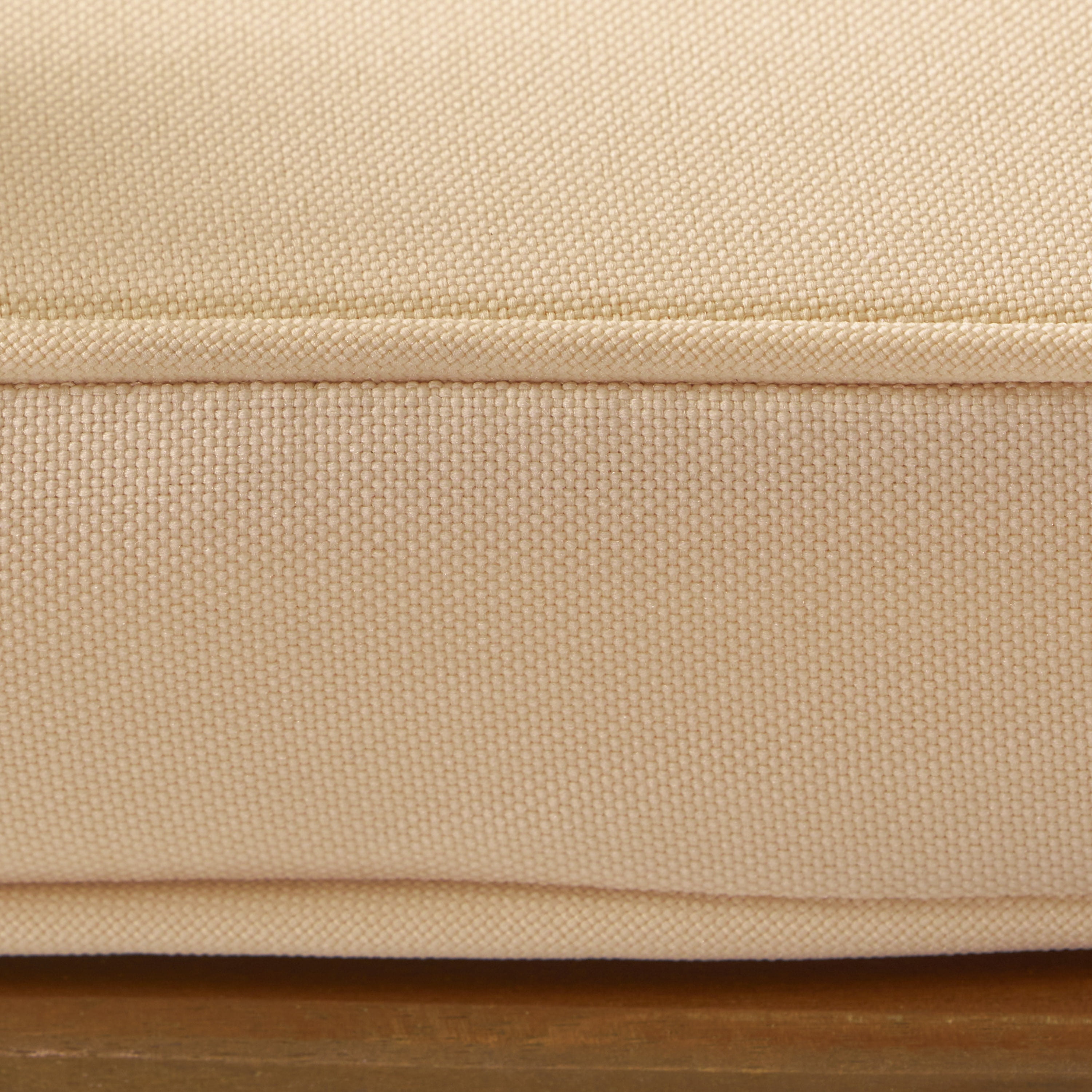 Includes: One (1) Rocking Chair Material: Acacia Wood Cushion Material: Water Resistant Fabric Fabric Composition: 100% Polyester Finish: Teak Cushion Color: Cream Hand-Crafted Details Assembly Required Dimensions: 33.25 inches deep x 24.00 inches wide x 35.75 inches high Seat Dimensions: 19.00 inches deep x 20.75 inches wide x 16.50 inches high Arm Height: 26.75 inches