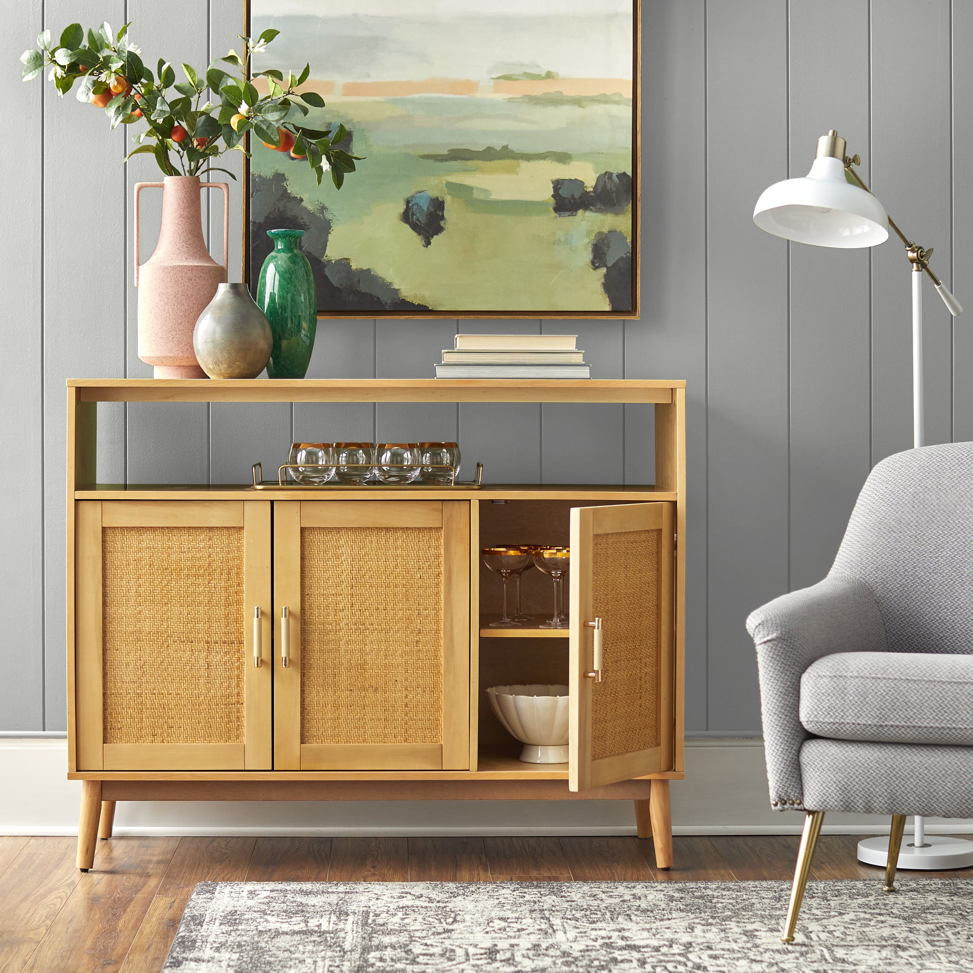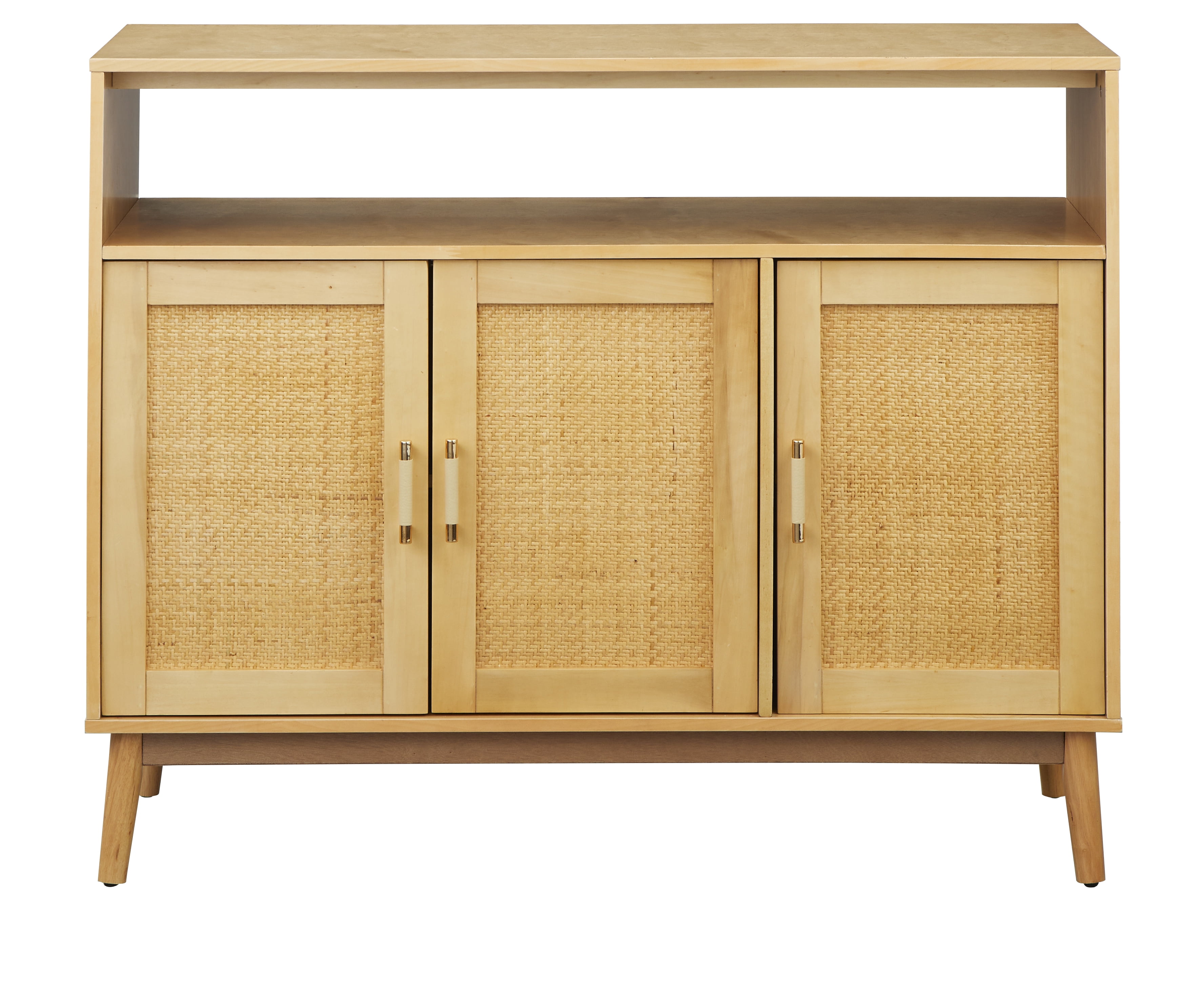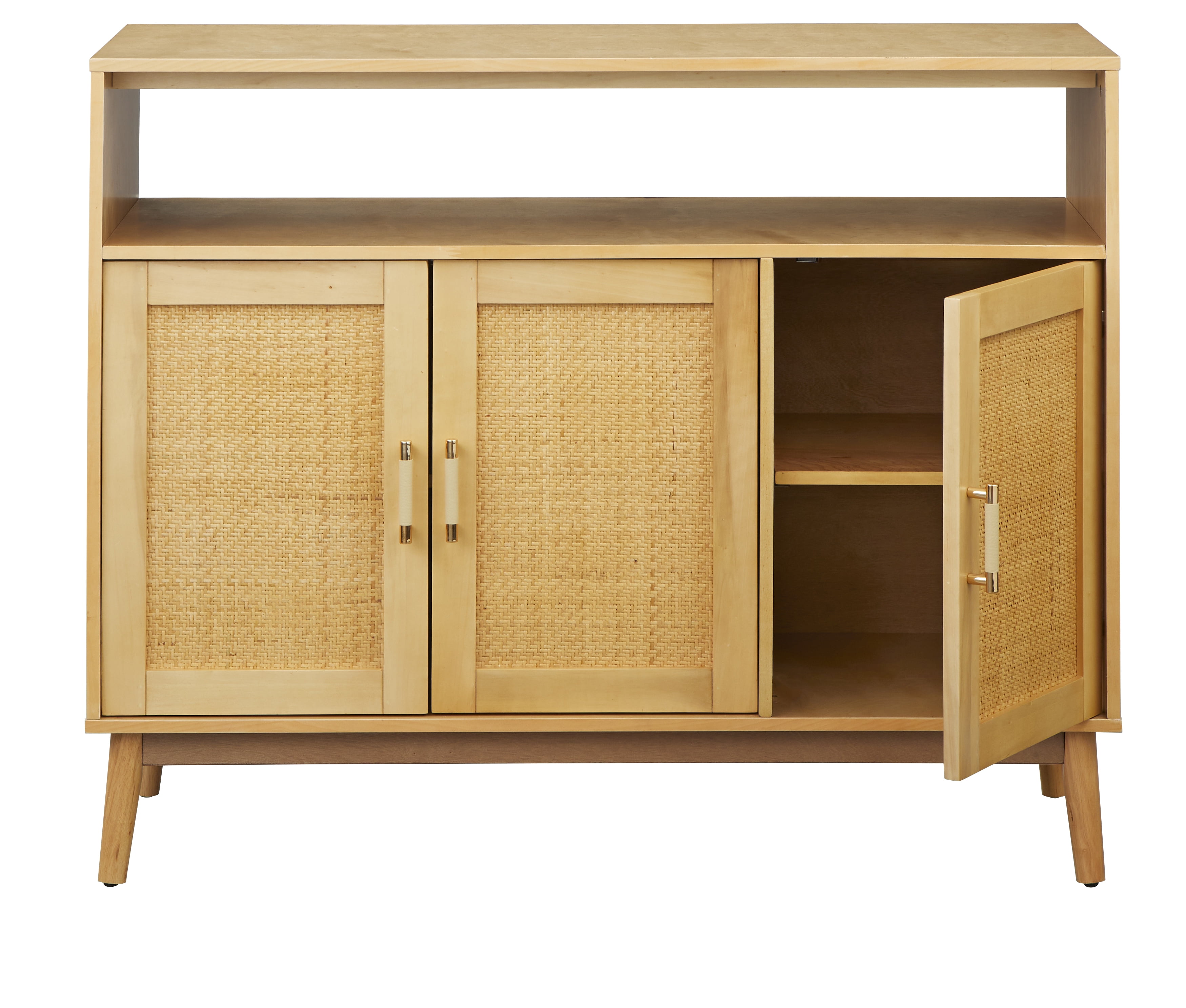 Desert Fields Edgerton 3-Door Rattan Panel Sideboard, Natural Finish