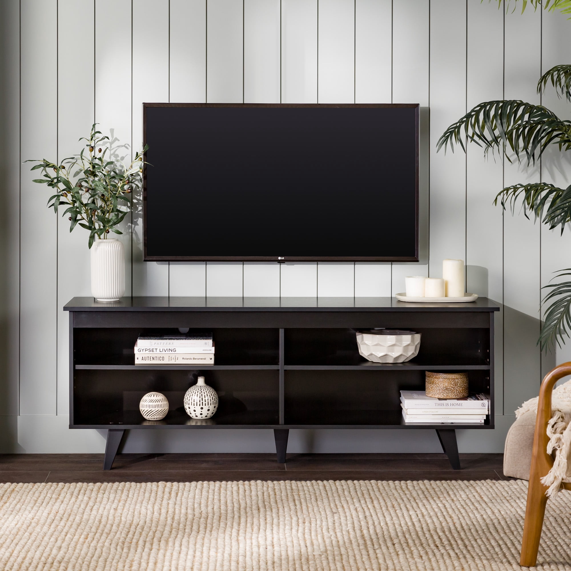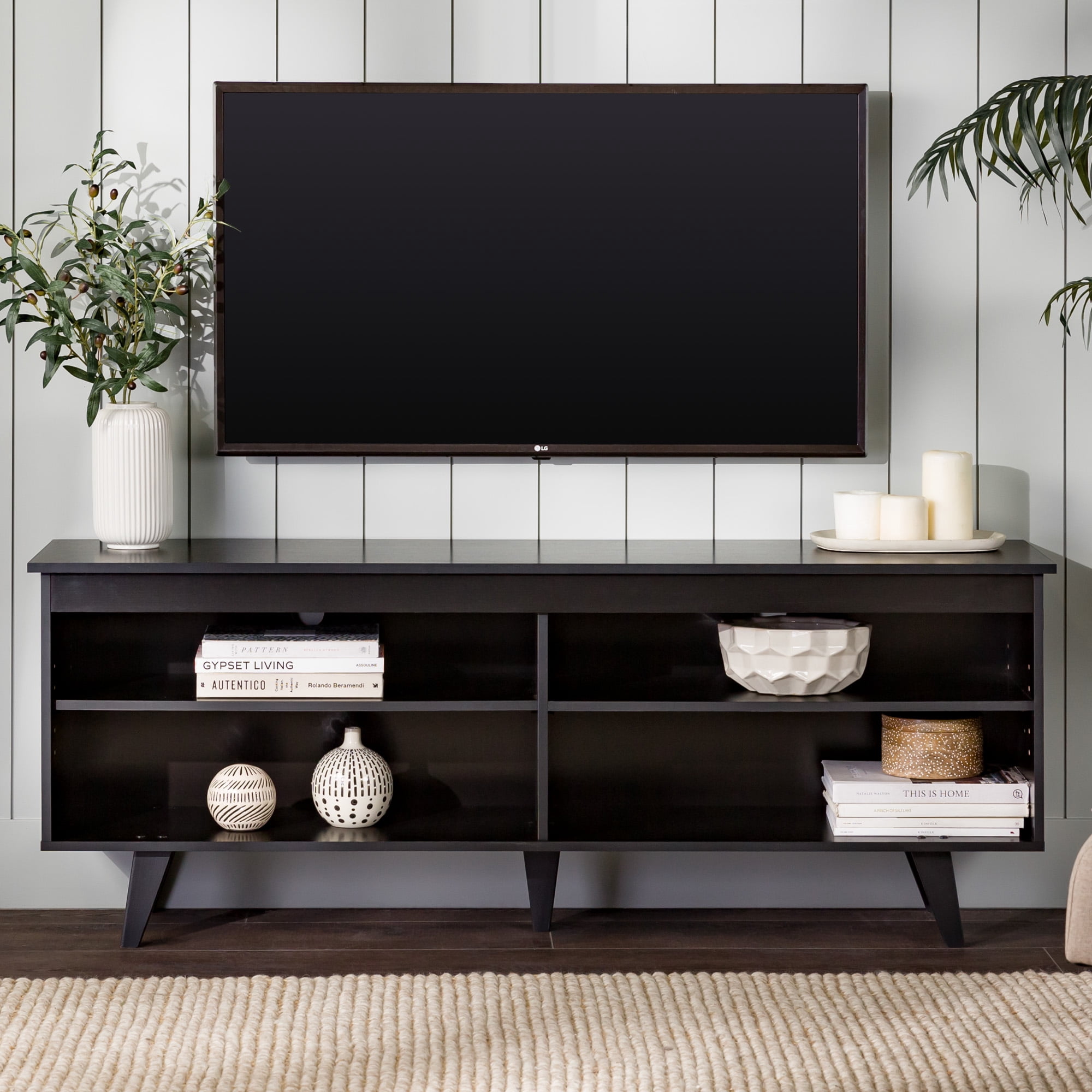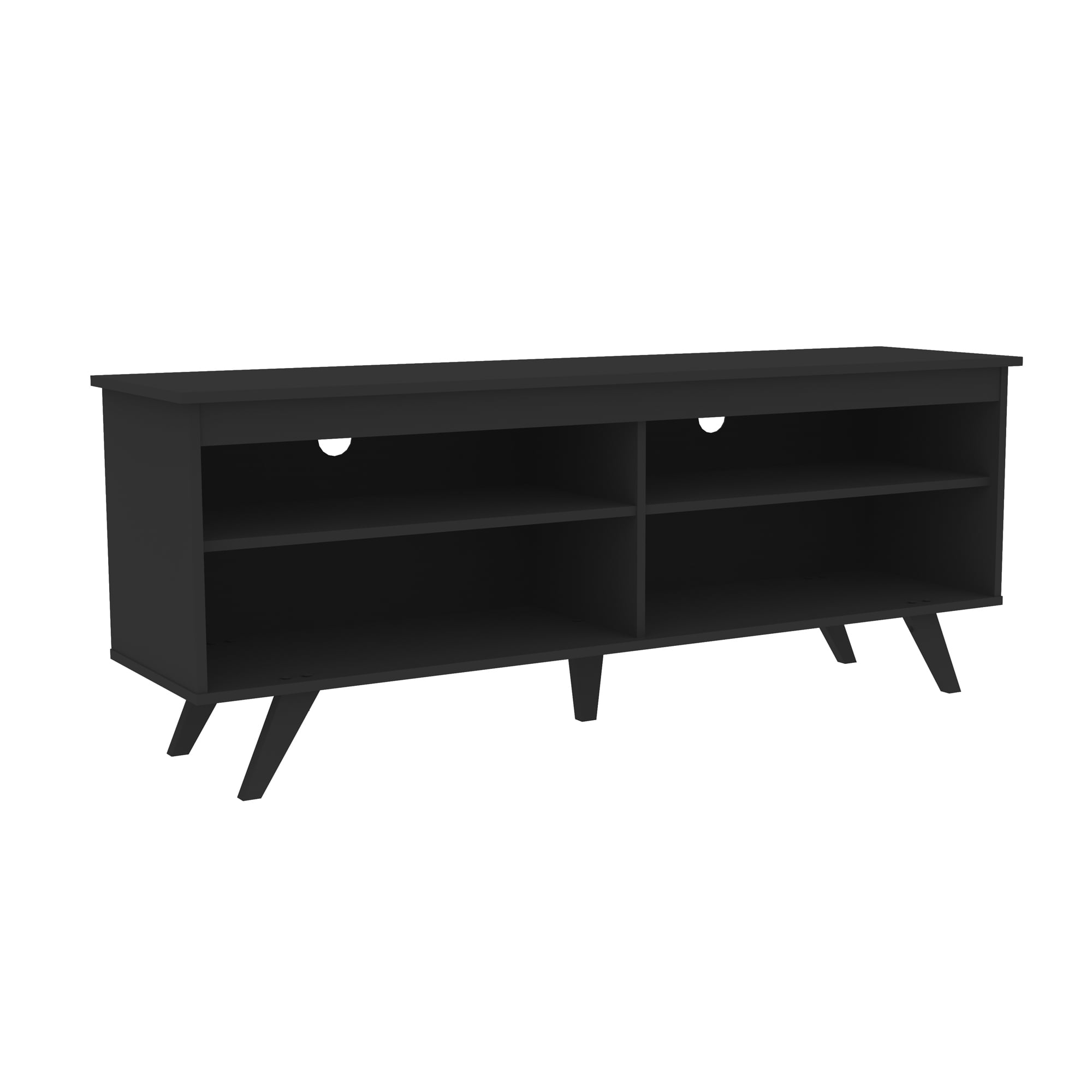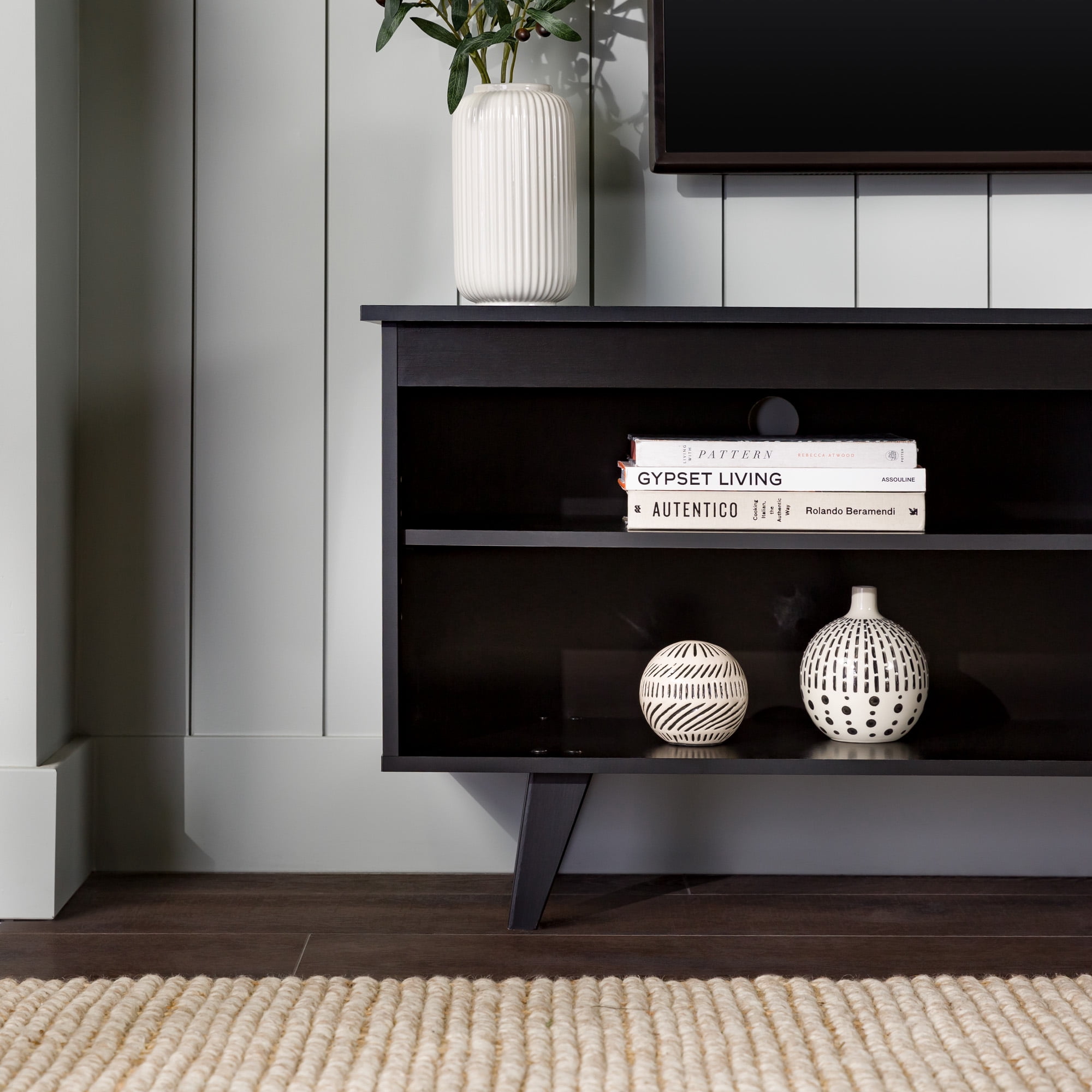 Bellamy Studios Selene Angled Leg TV Stand for TVs up to 60″, Painted: 59″ TV stand by Bellamy Studios Supports TVs up to 60″ Supports up to 250 lbs. Modern mid-century design with angled support legs for added aesthetic Offers 4 open storage shelves with cord management Can be utilized as a TV stand or as an entertainment center, buffet, or storage console Great for use in your living room, bedroom, home office, or dining room