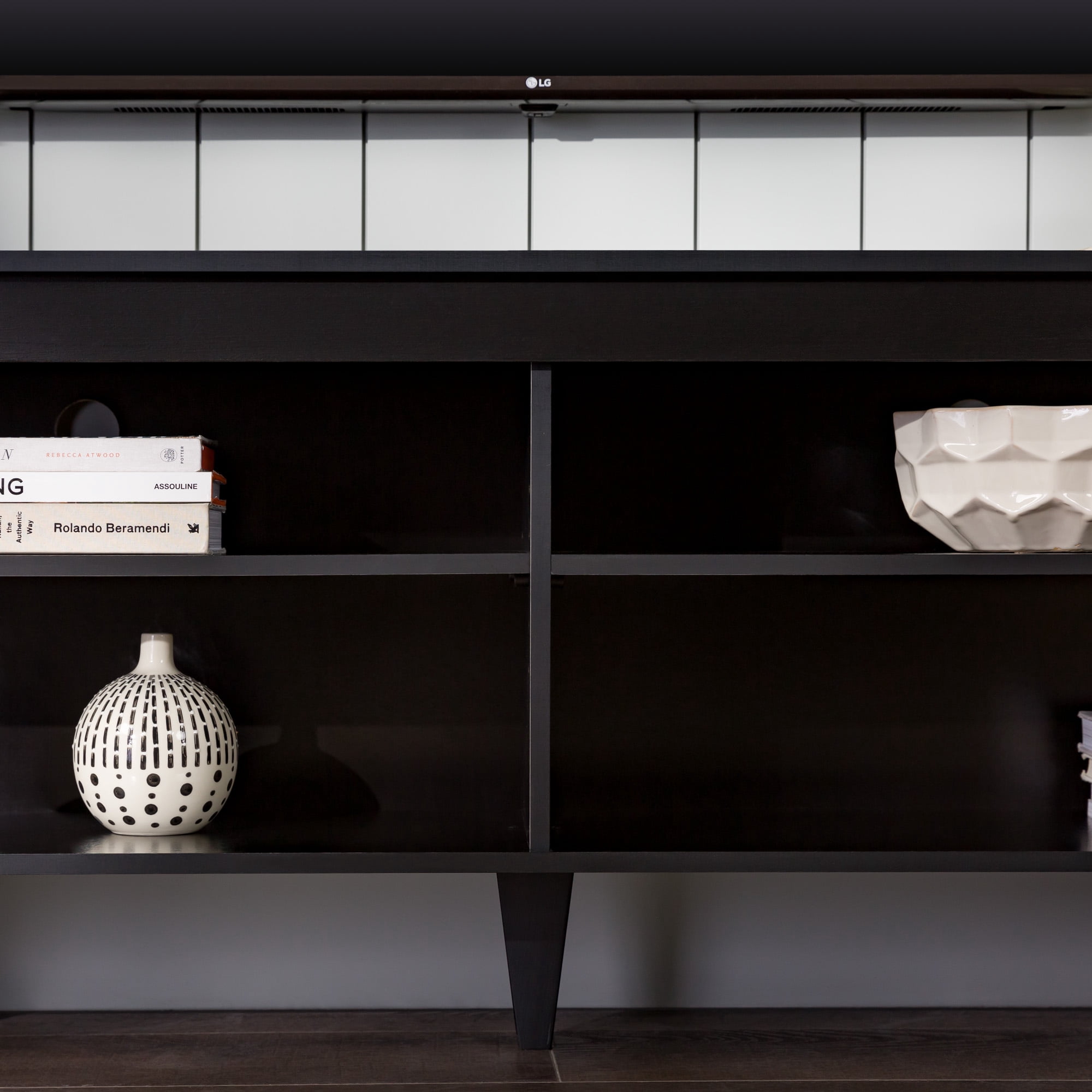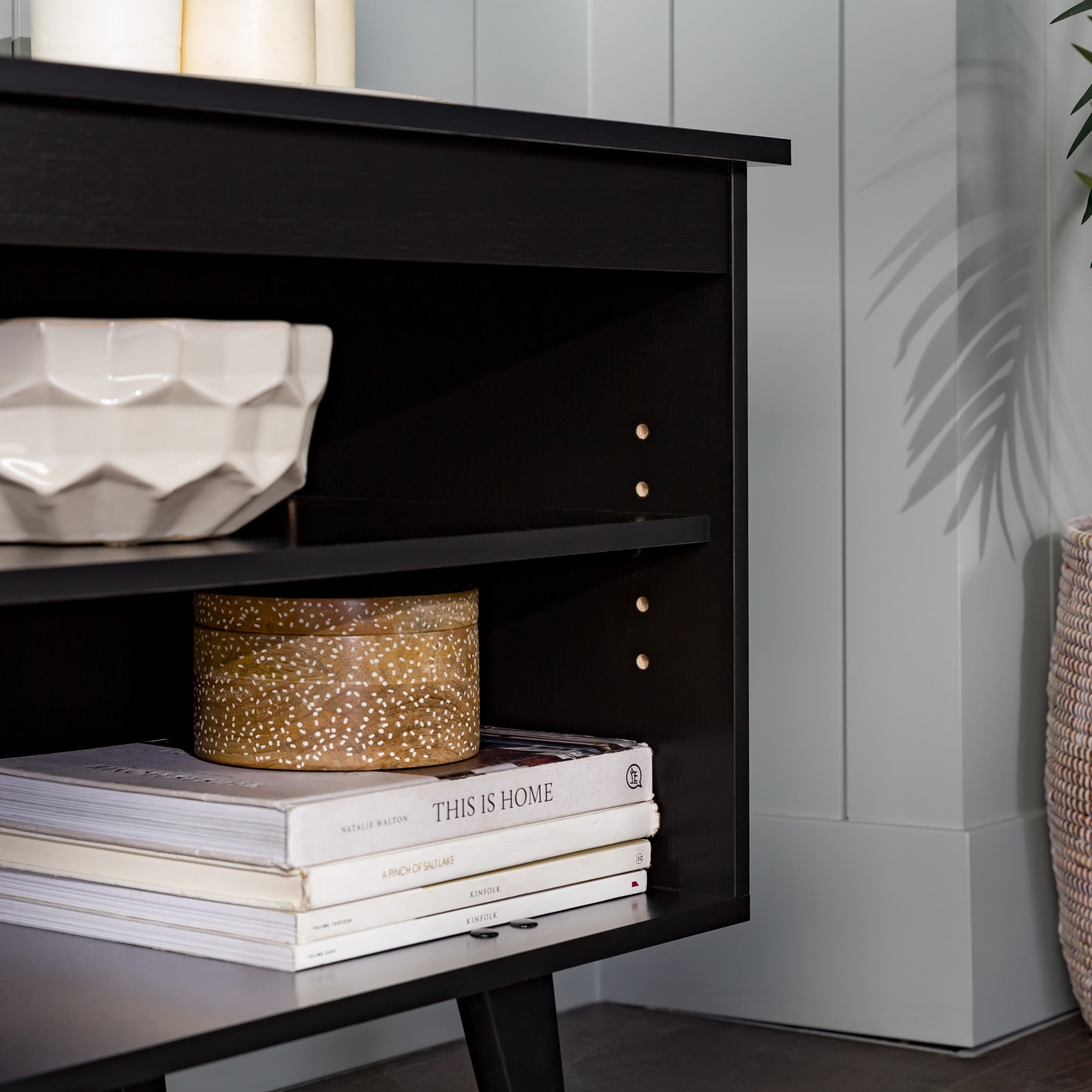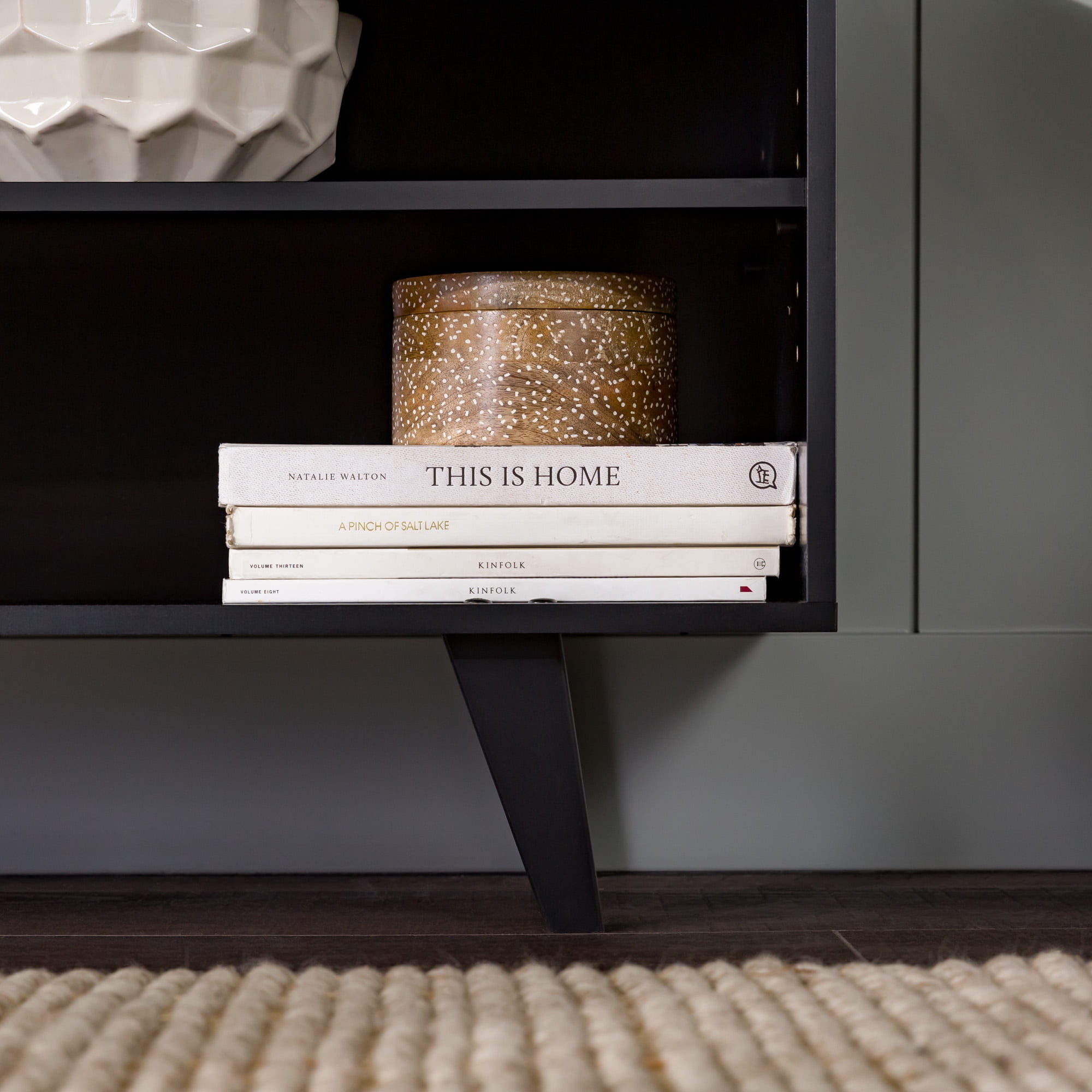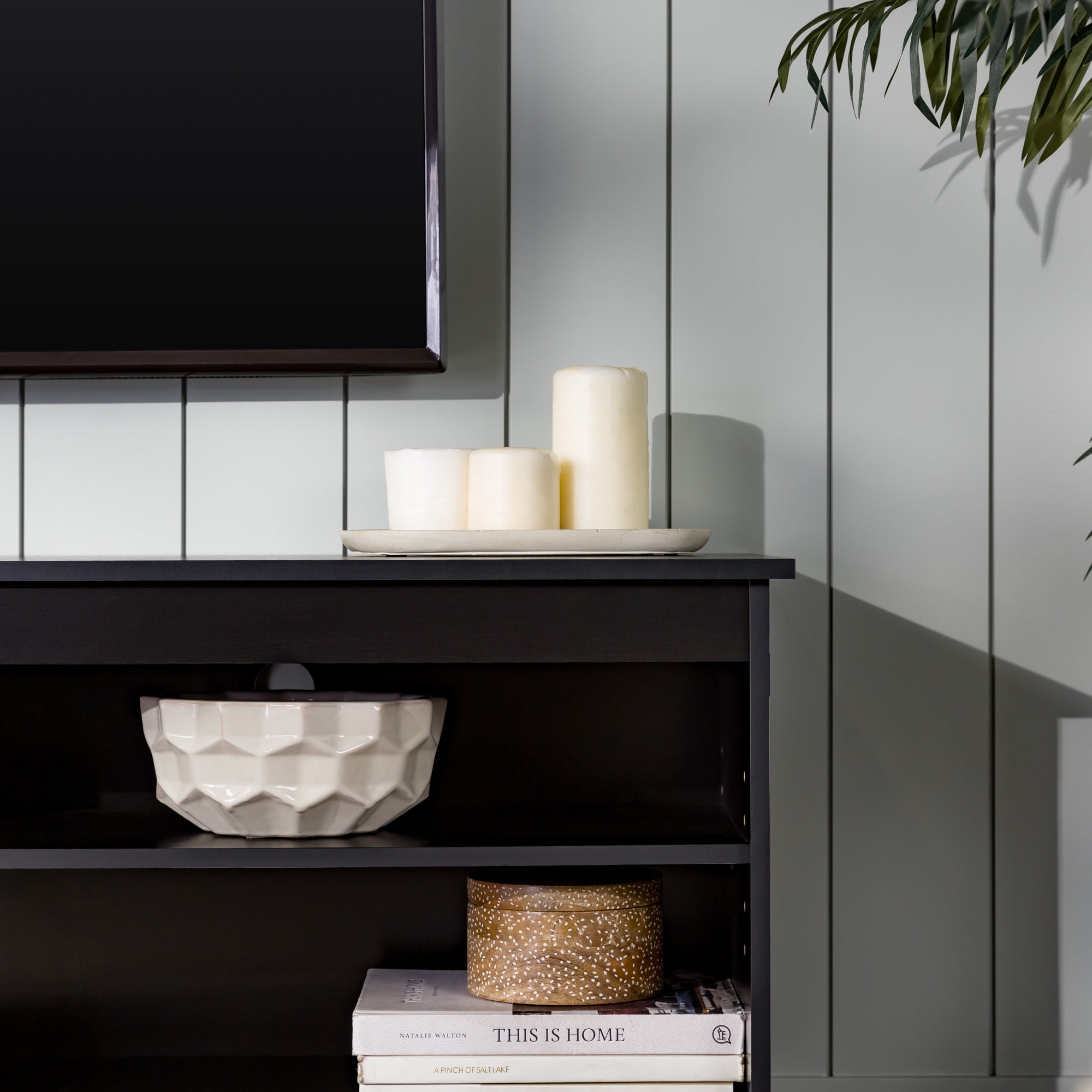 Bellamy Studios Selene Angled Leg TV Stand for TVs up to 60″, Painted: 59″ TV stand by Bellamy Studios Supports TVs up to 60″ Supports up to 250 lbs. Modern mid-century design with angled support legs for added aesthetic Offers 4 open storage shelves with cord management Can be utilized as a TV stand or as an entertainment center, buffet, or storage console Great for use in your living room, bedroom, home office, or dining room