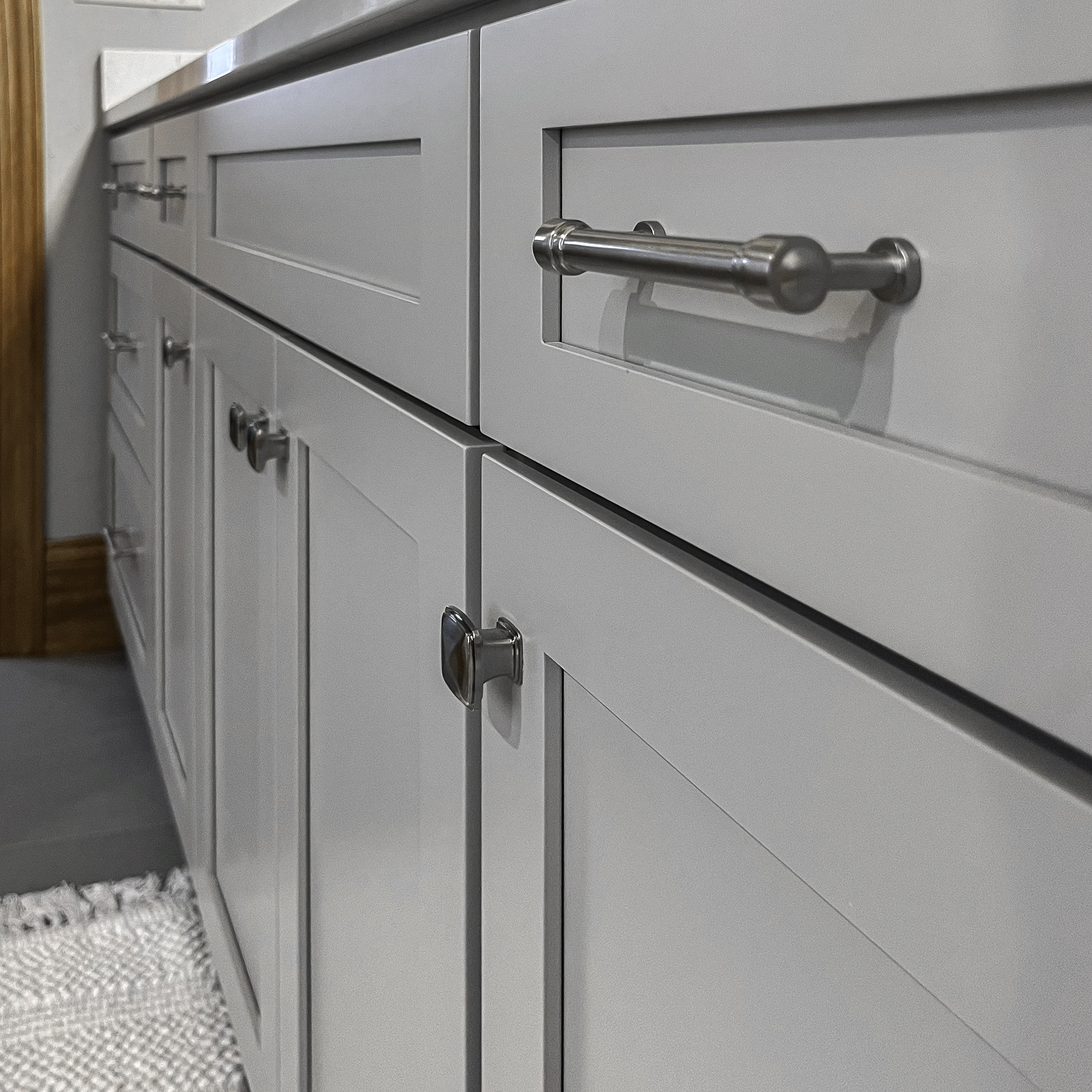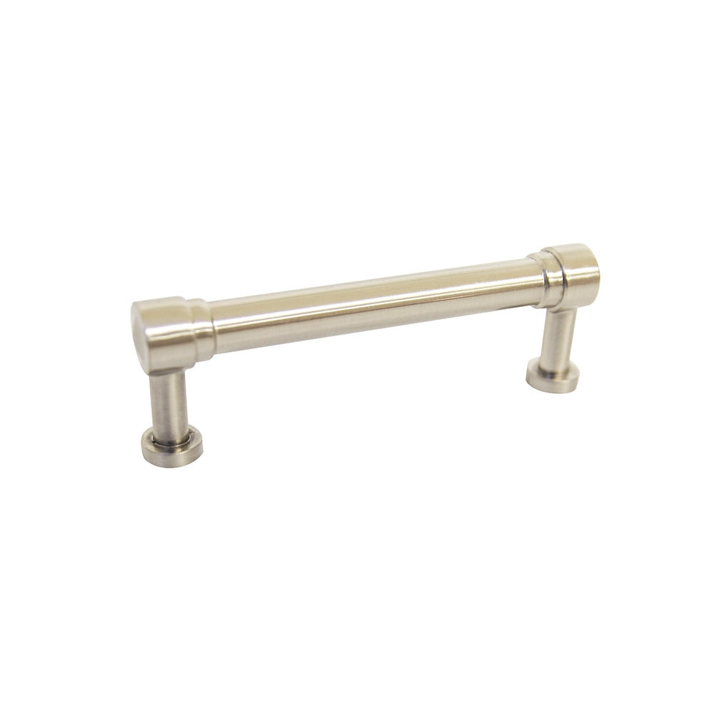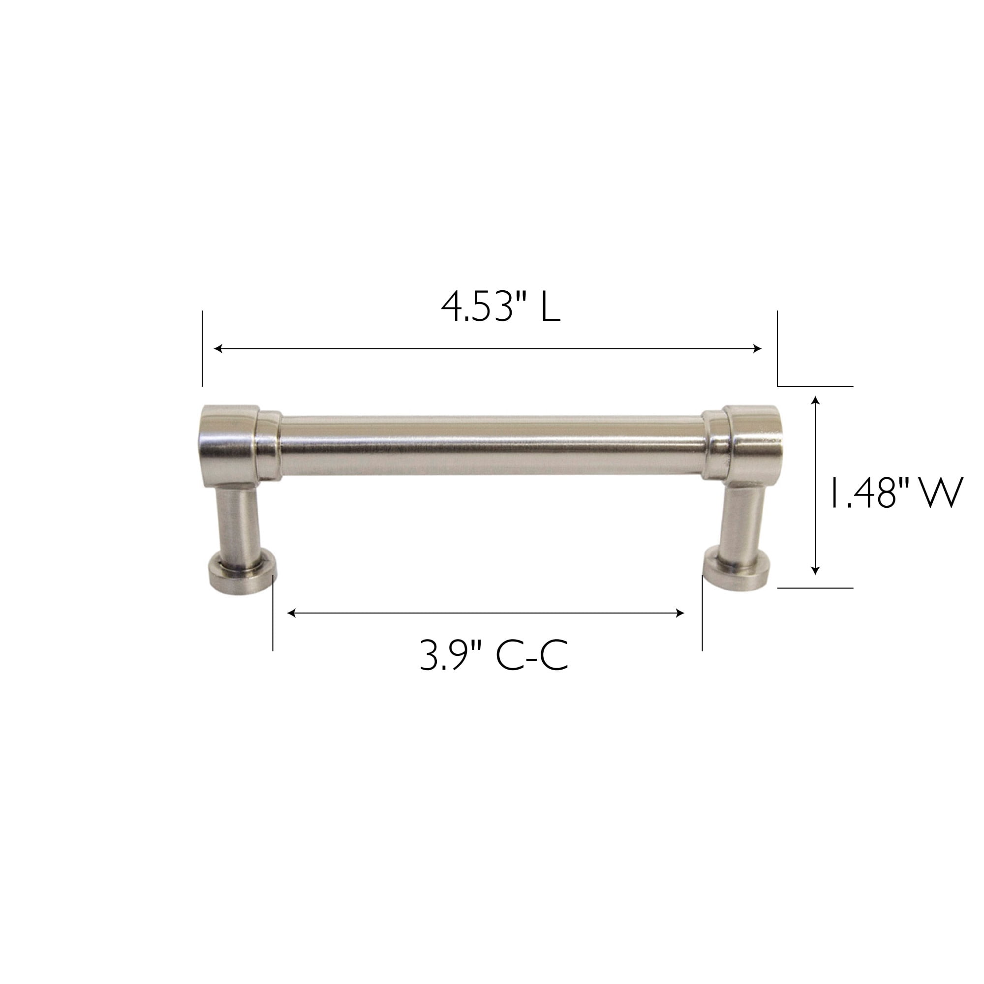 Mounting hardware included for easy installation This item measures 4.53-inches length, 3.9-inches C-C Boasts a sleek, brushed nickel finish This modern pull adds an updated look to any decor Match to colored walls, granite countertops and new appliances