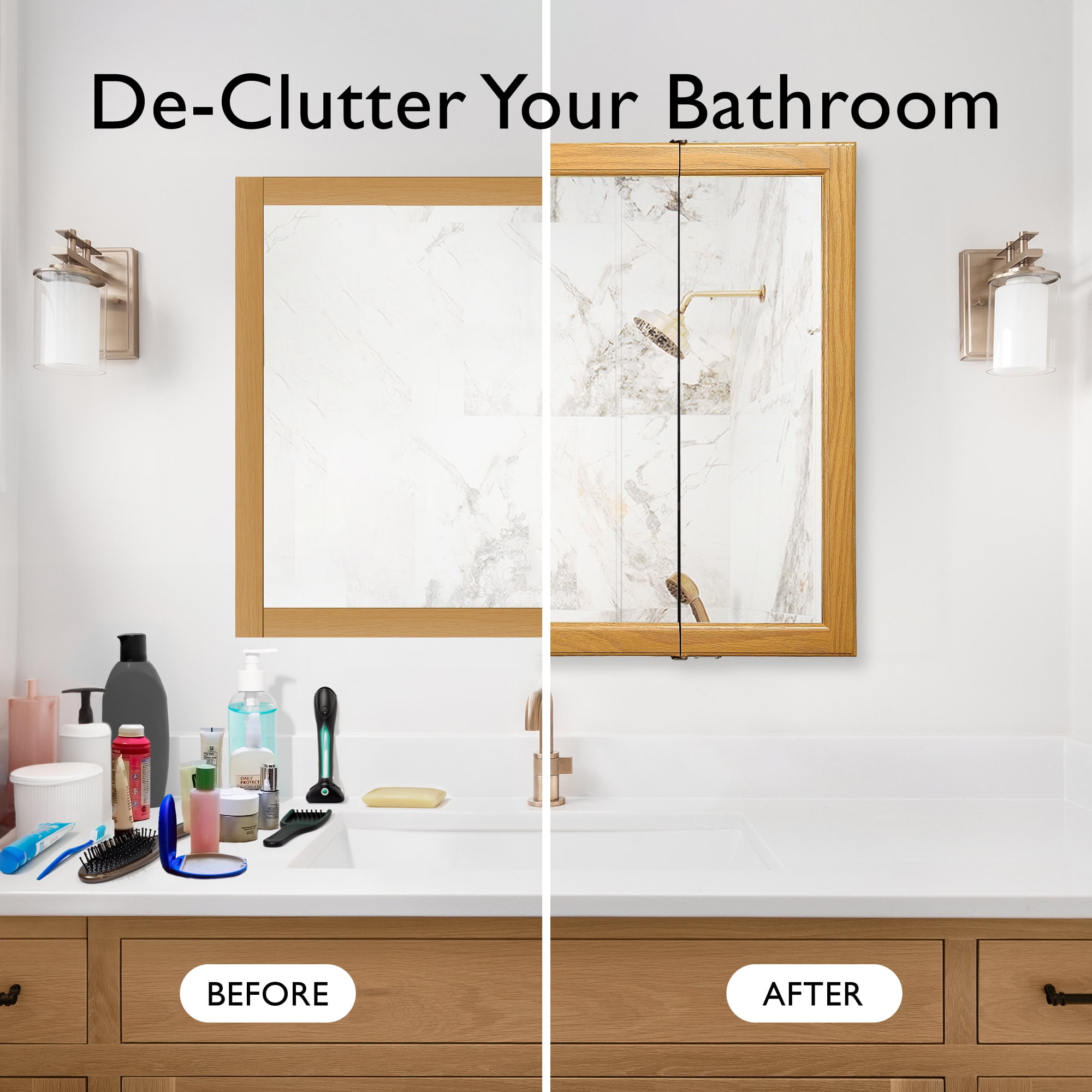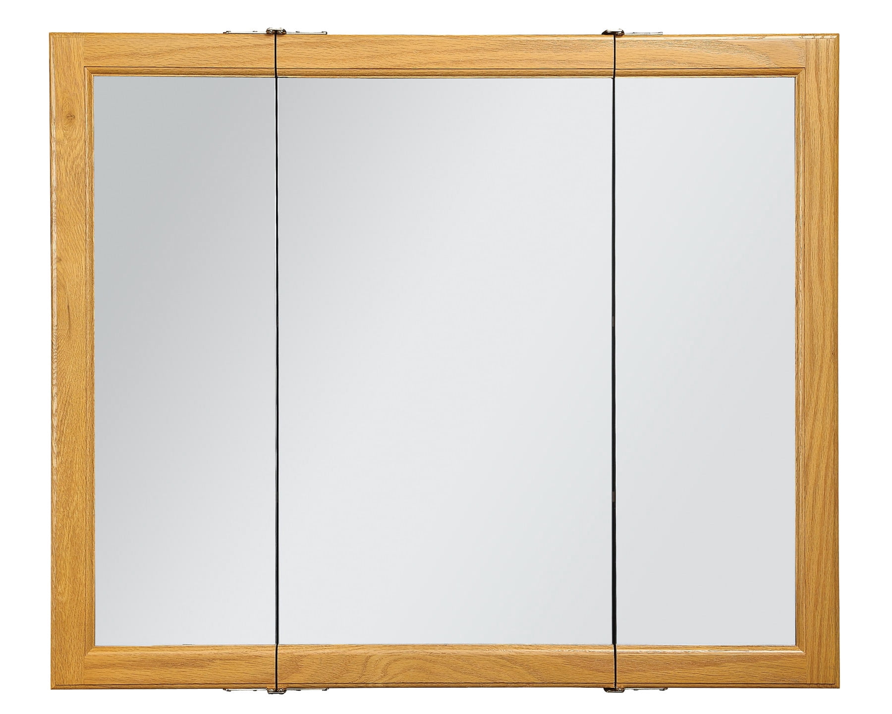 Design House 36″ Wood Tri-View Wall Mount Bathroom Medicine Cabinet, Honey Oak