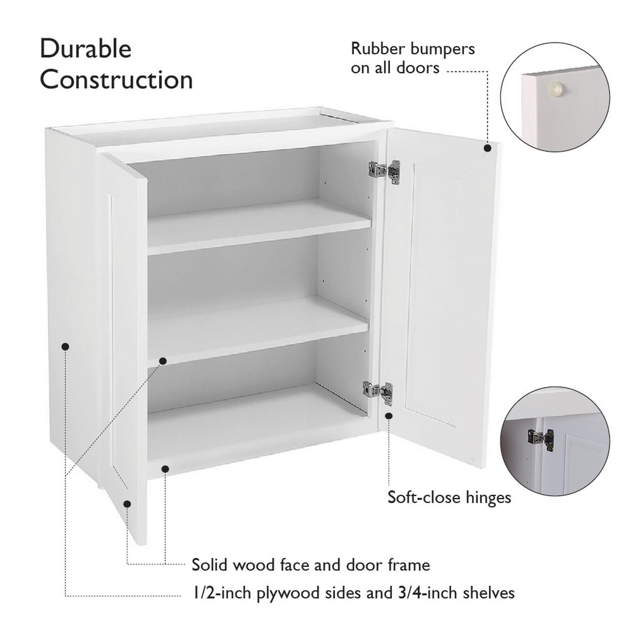 Create a stunning kitchen with Design House Brookings Kitchen Cabinets. We offer you a less expensive option, with quality and style comparable to competitors. Utilize these cabinets in a variety of rooms to create storage solutions throughout the home, in a kitchen, laundry room, garage, office, and more. All cabinets come equipped with 6-way adjustable soft-close hinges, so your doors and drawers can remain as quiet as possible. Our RTA (ready to assemble) cabinets use a pre-installed snap together clip system, making the installation process fast and easy. Cabinets and cabinet accessories are sold separately for your ability to customize. Style of drawers/doors: Shaker, Number of drawers: 0, Number of doors: 2, Number of shelves: 2. Designed and manufactured by Design House, the trusted source for quality lighting, hardware, plumbing, kitchen, and bath products for every taste and budget.Design House Kitchen Cabinets are CARB P2 compliant and have a 1 year limited warranty.