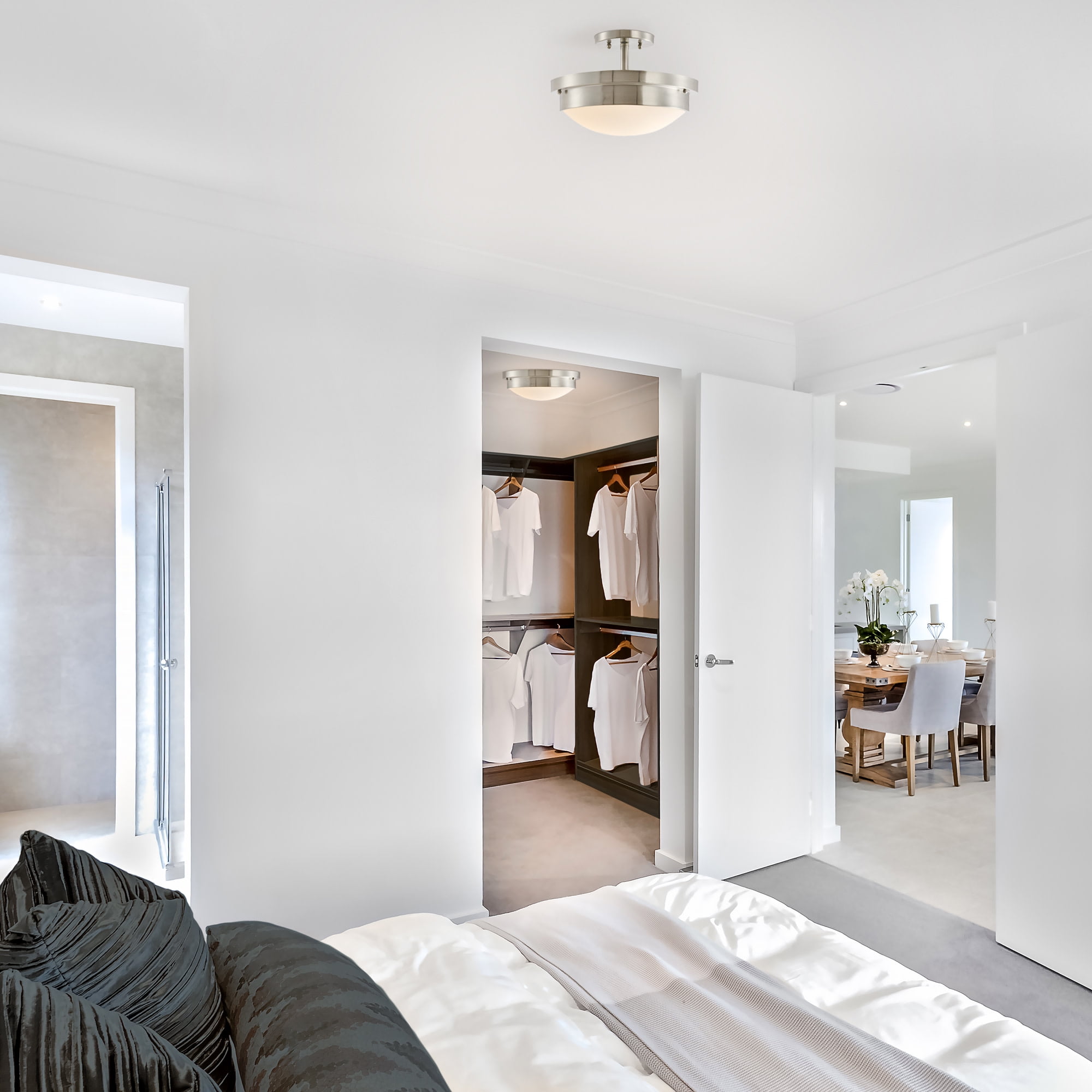 Design House 588475 Harris Traditional 2-Light Indoor Dimmable Dual Mount Ceiling Light with Frosted Glass Shade for Bedroom Dining Room Kitchen, Satin Nickel