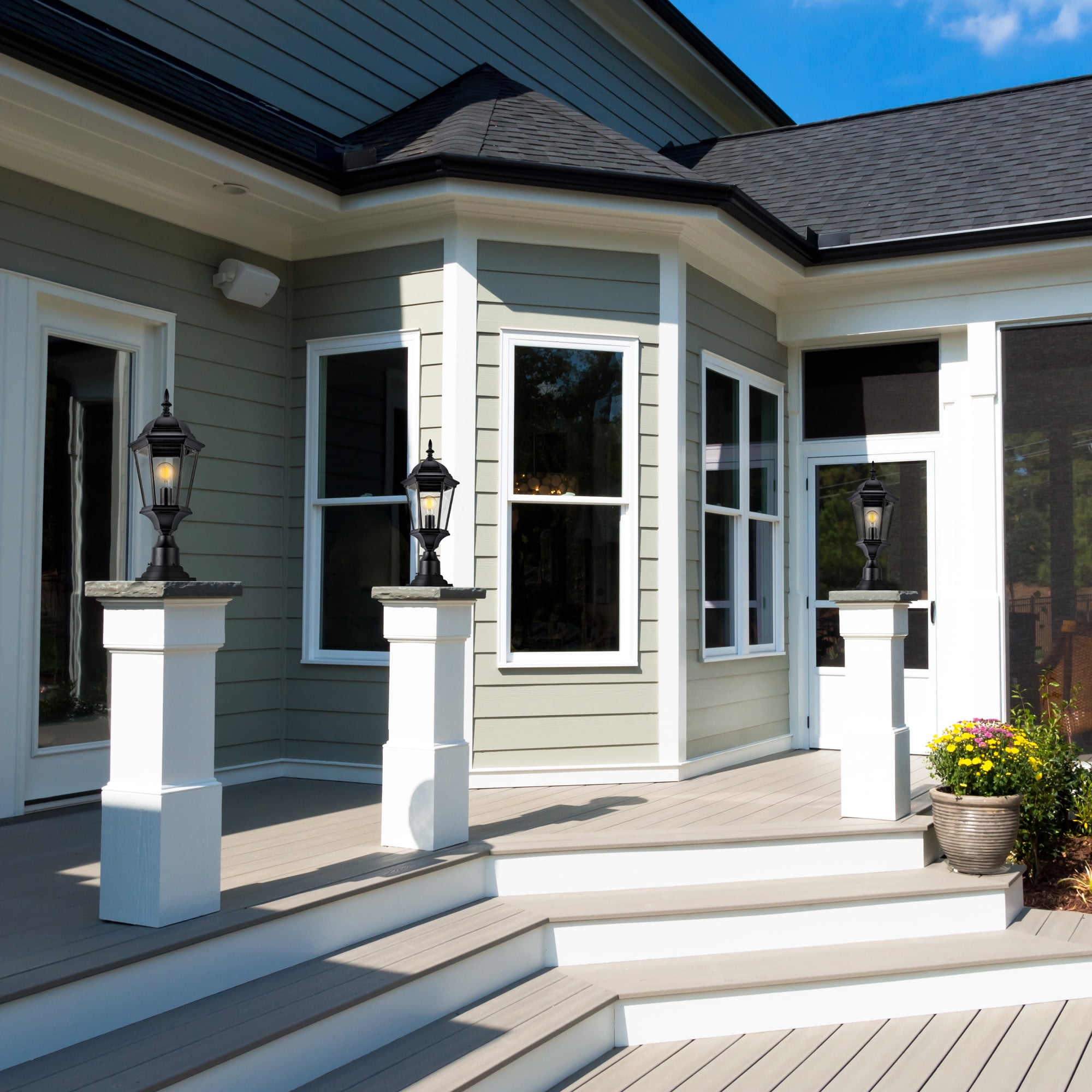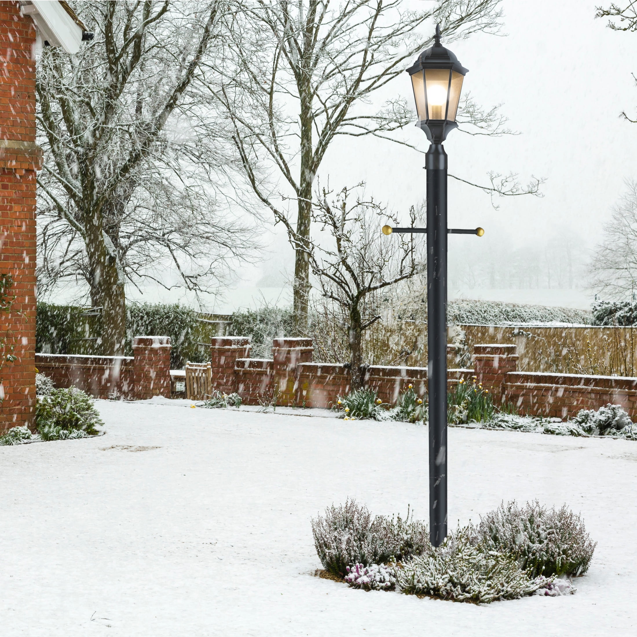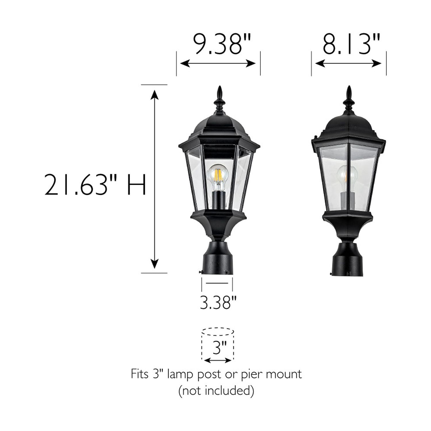 Versatile Outdoor Placement: Ideal for walkways, driveways, porch, yards, patios or any outdoor locations Traditional Light Fixture: Classic and stylish design with six clear beveled glass panels and textured black finish Strong and Durable: Constructed of high quality, weather-resistant aluminum and wet rated for long-lasting use Two Mounting Options: This post top light can be used with a 3-inch lamp post mount (not included) or pier base mount (not included) One Light: Requires one 60-watt E26 medium base bulb or LED equivalent (not included) Suitable for Wet Locations: This product is cUL/UL certified for use in wet locations Buy with Confidence: Customer satisfaction has been our priority for 150 years; with our 10-year limited warranty, you can rest assured your purchase is risk-free This product is cUL/UL certified for use in wet locations. Comes with a 10-year limited warranty that protects against defects in materials and workmanship.