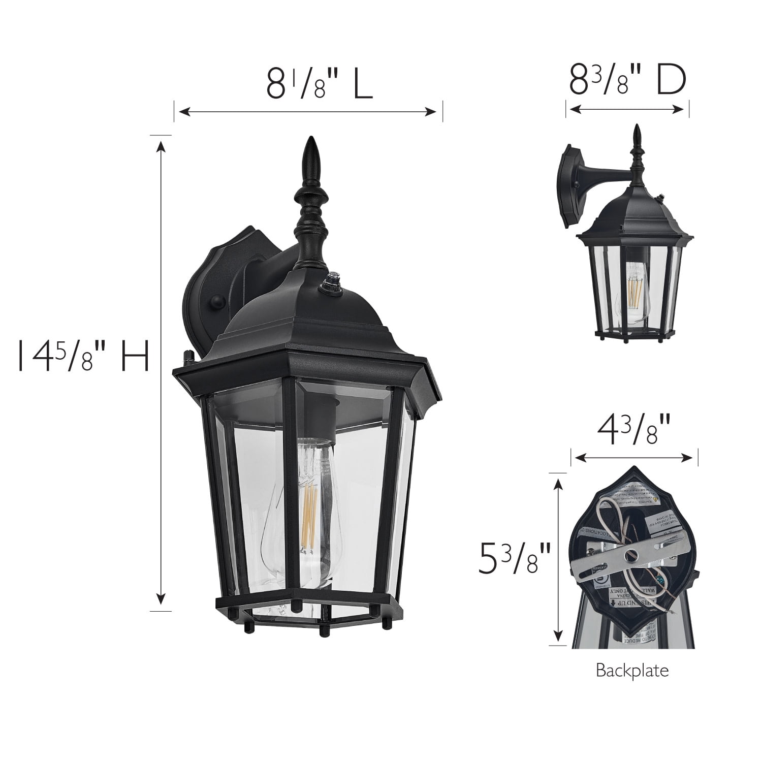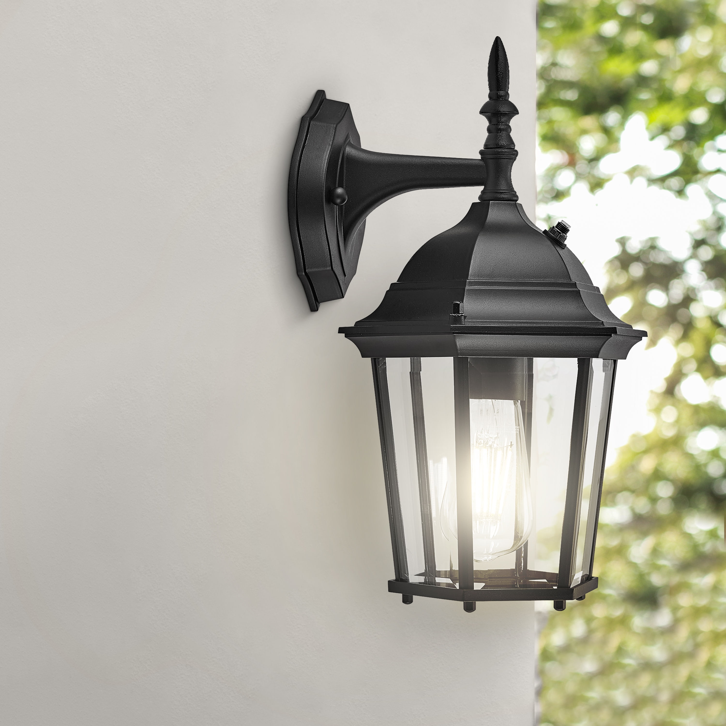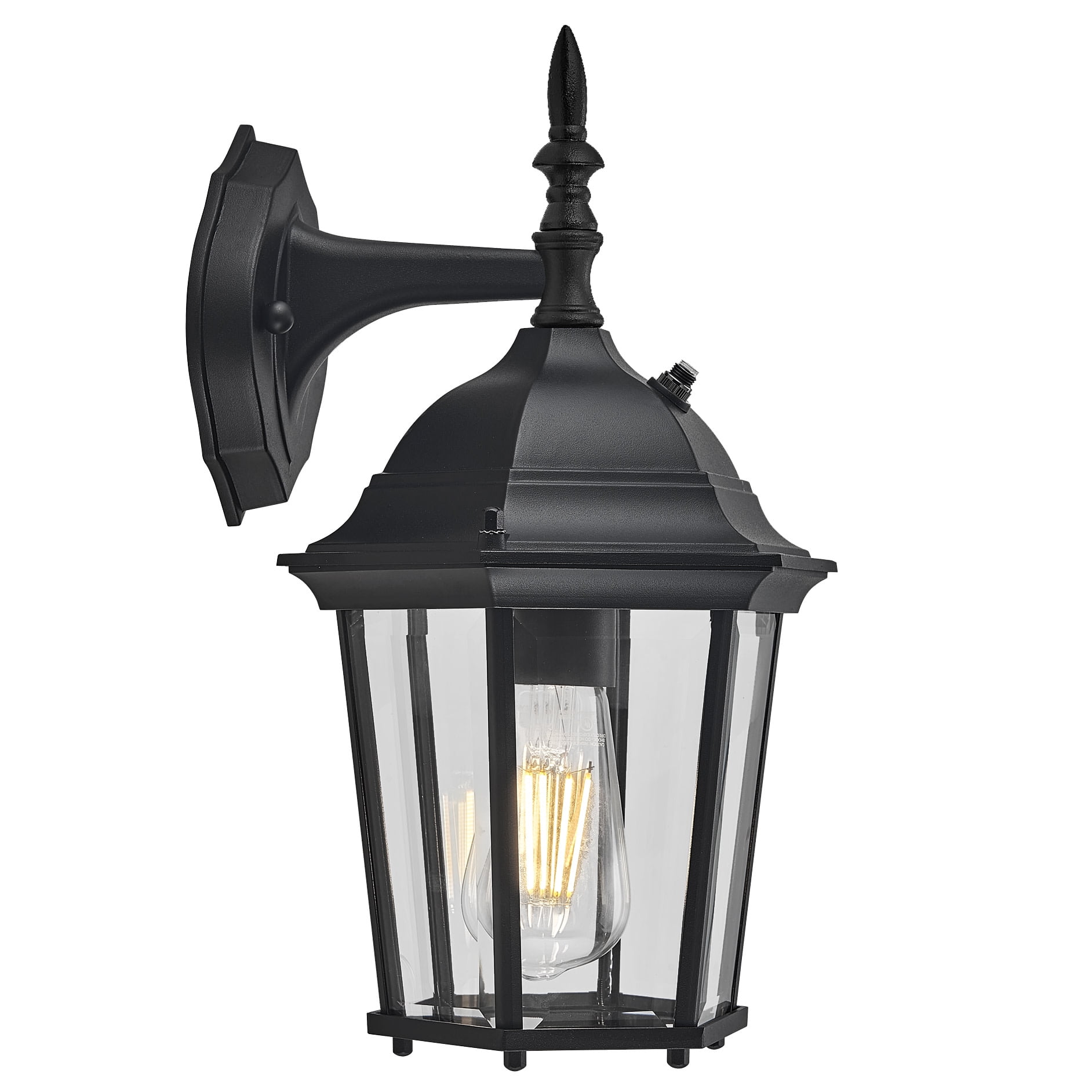 Dusk to Dawn Sensor: The built-in sensor will turn lights on automatically at dusk and off at dawn, saving energy and increasing security around your home Classic Design: Traditional style downlight with black finish and clear beveled glass works well with a wide variety of home designs and outdoor decor Durable: Powder-coating creates a protective barrier against the elements, perfect for long-lasting outdoor use; this product is cUL/UL certified for use in wet locations LED Light Bulb Included: Includes one energy efficient 2700K LED bulb that provides a warm glow of light (also compatible with maximum 100-watt medium base E26 bulb not included) Easy to Install: This light fixture comes with all the accessories and instructions required, allowing a quick and simple installation process Buy with Confidence: Customer satisfaction has been our priority for 150 years; with our 10-Year limited warranty, you can rest assured your purchase is risk-free This product is cUL/UL certified for use in wet locations. Comes with a 10-year limited warranty that protects against defects in materials and workmanship.