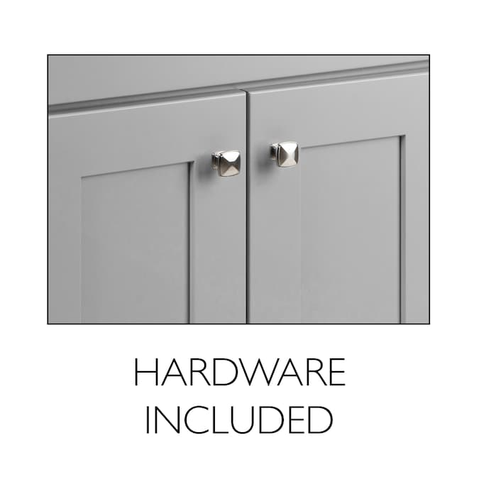 - Contemporary shaker design features gently recessed paneling on the door and drawer fronts, a simple style accented by metal knob hardware, optimized to bring a clean look to fit any space, pilot holes in the back of cabinet to change out pulls/knobs if needed
