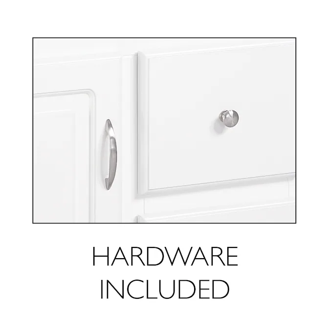 - Contemporary shaker design features gently recessed paneling on the door and drawer fronts, a simple style accented by metal knob hardware, optimized to bring a clean look to fit any space, pilot holes in the back of cabinet to change out pulls/knobs if needed