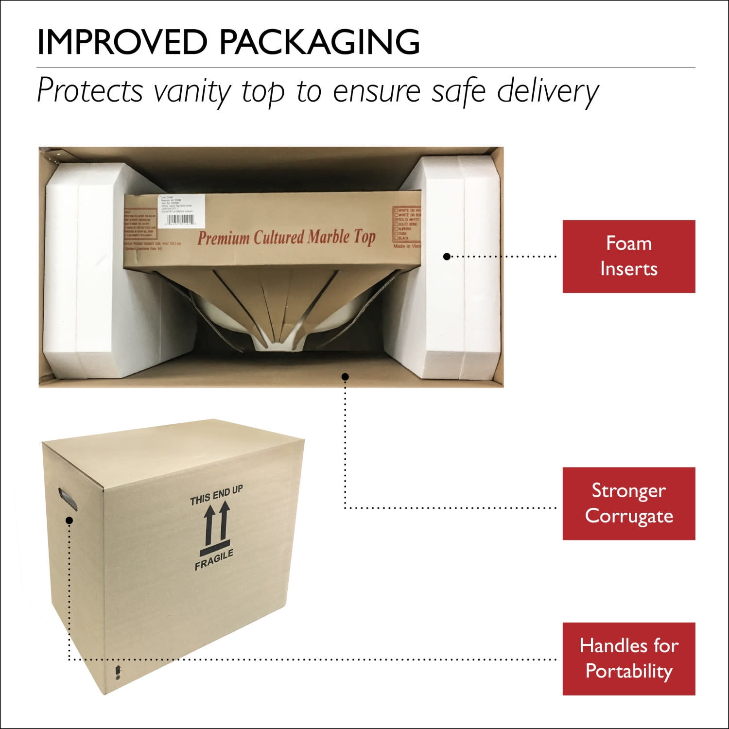 Clean & Modern Vanity Sink for Bathroom: Features an integrated oval sink and contemporary ivory swirl finish that pairs well with any bathroom decor style Pre-Drilled 4-Inch Center set: Three pre-drilled holes allow for a standard 4-inch center set mount faucet on this vanity top Durable Construction: Crafted with cultured marble to create a highly durable and water-resistant surface Efficient Design: Includes an overflow hole and a 4-inch integrated backsplash to prevent water damage to your wall Convenient Clean-Up: Cultured marble surface is stain-resistant and easy to clean; simply wipe using a non-abrasive soap and a damp cloth Buy with Confidence: Customer satisfaction has been our priority for 150 years; with our 5-year limited warranty, you can rest assured your purchase is risk-free