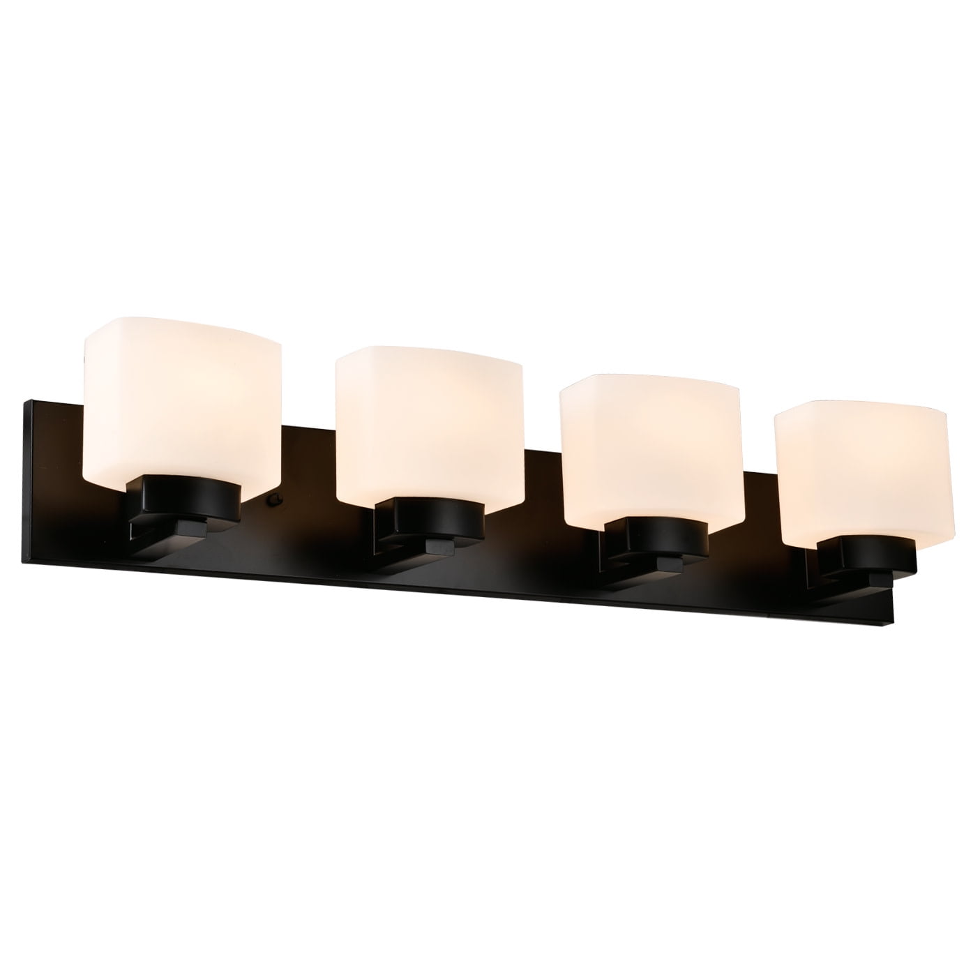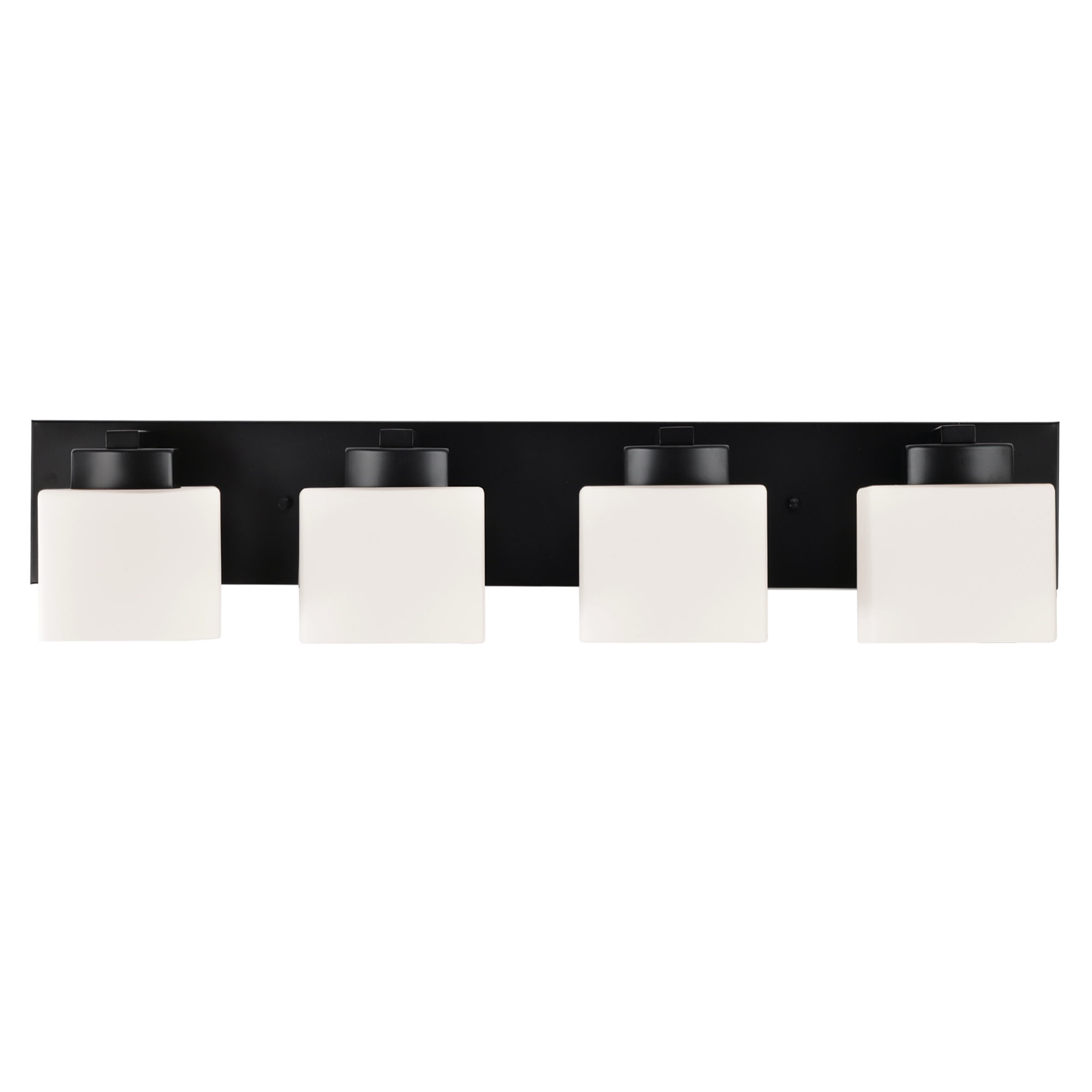 Design House Dove Creek 4 Light Matte Black Modern Dimmable Vanity Light with Frosted Glass Shades