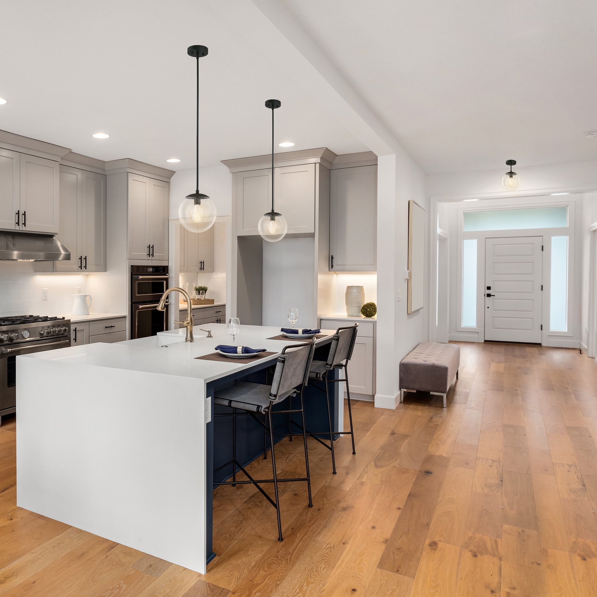 The Design House 588517 Gracelyn 1-Light Ceiling Light features a sleek matte black finish and a clear, seedy glass globe shade. The seedy glass conceals smudges, dirt, and fingerprints while capturing light and adding a brilliant glow of light. This ceiling light is rated for 120-volts and uses (1) 60W standard medium base bulb or LED equivalent (not included). Measuring 14-inches H by 9-inches W, this 1.8-pound fixture can be mounted on its own or paired with the Gracelyn Pendant (#588509) for a cohesive look throughout your home. The seedy glass shade and sleek matte black finish add a modern accent in kitchens, bedrooms, hallways, entryways, closets, and more. Designed and manufactured by Design House, the trusted source for quality lighting, hardware, plumbing, kitchen, and bath products for every taste and budget.
