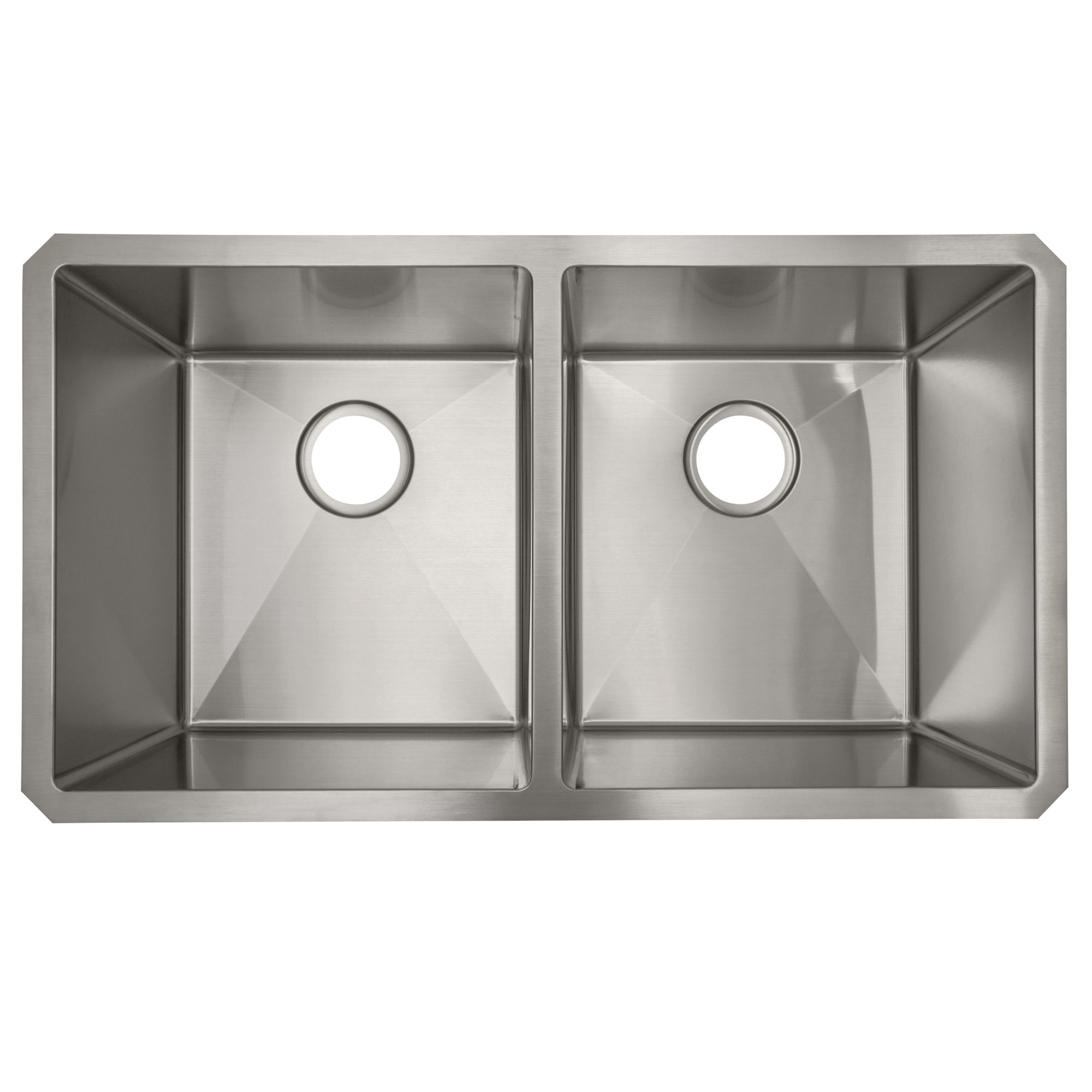 32-inch double bowl design for separation of clean and dirty dishes Made of durable 18-gauge 304 stainless steel Protective undercoating prevents scratching, staining and rusting Features a rear-set drain and expertly engineered channel grooves for optimal drainage Tight, rounded R10 corners for easy cleaning Sound barrier technology minimizes noise and vibrations