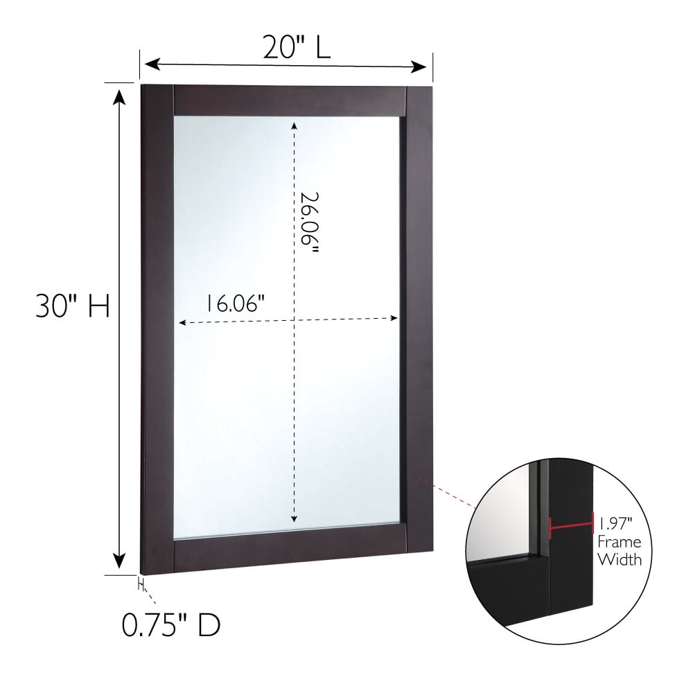 Design House Shorewood 20″ x 30″ Rectangular Wall Accent Mirror, Espresso