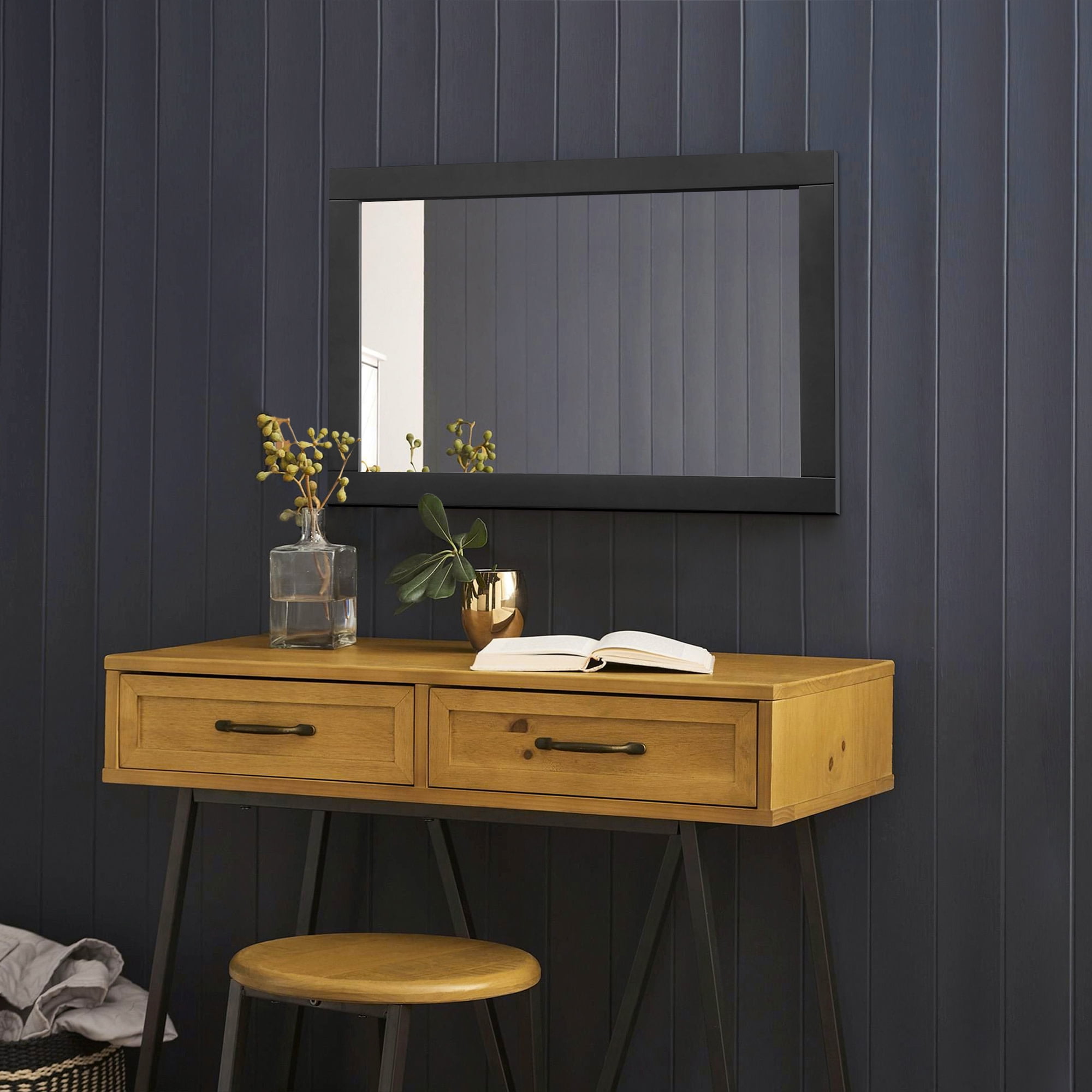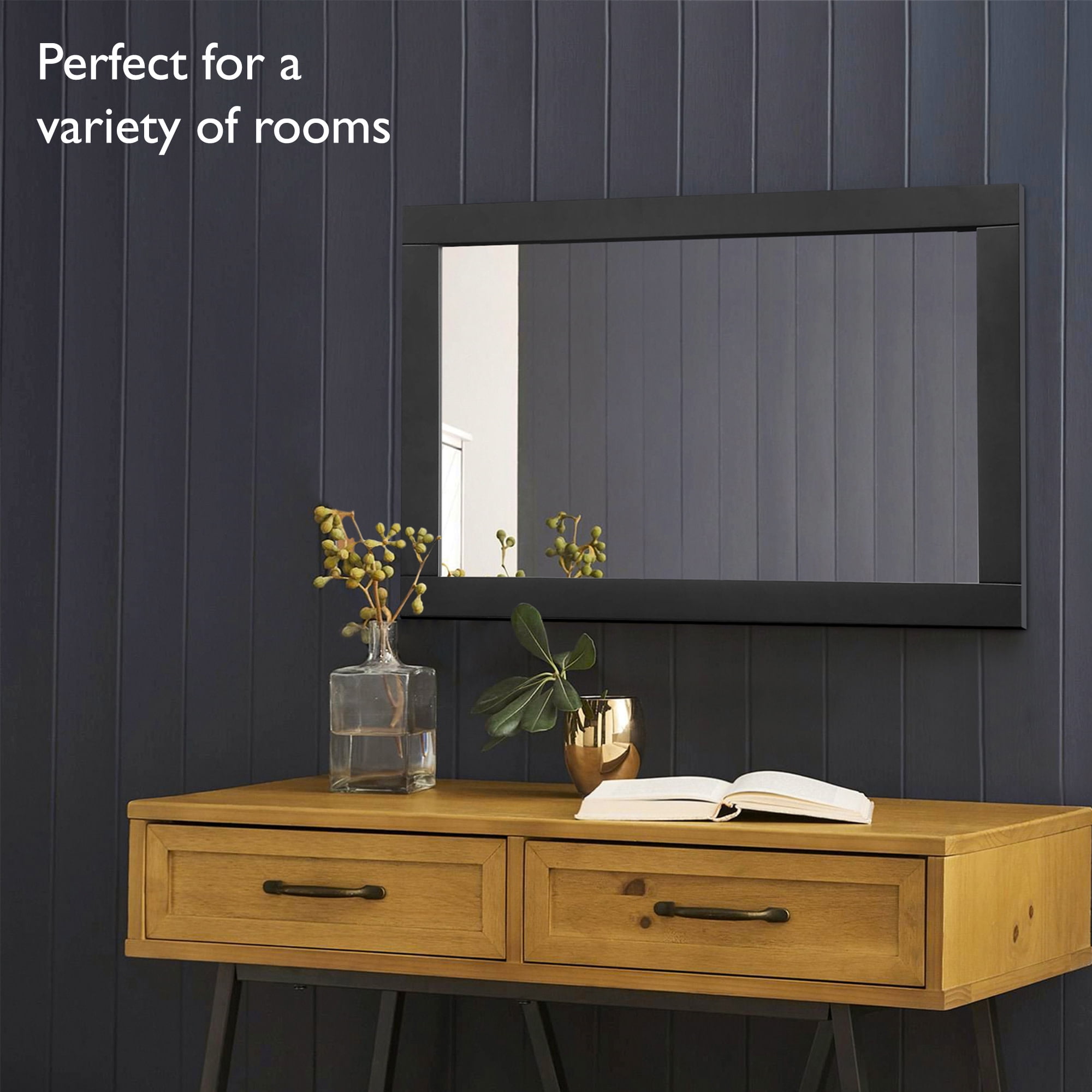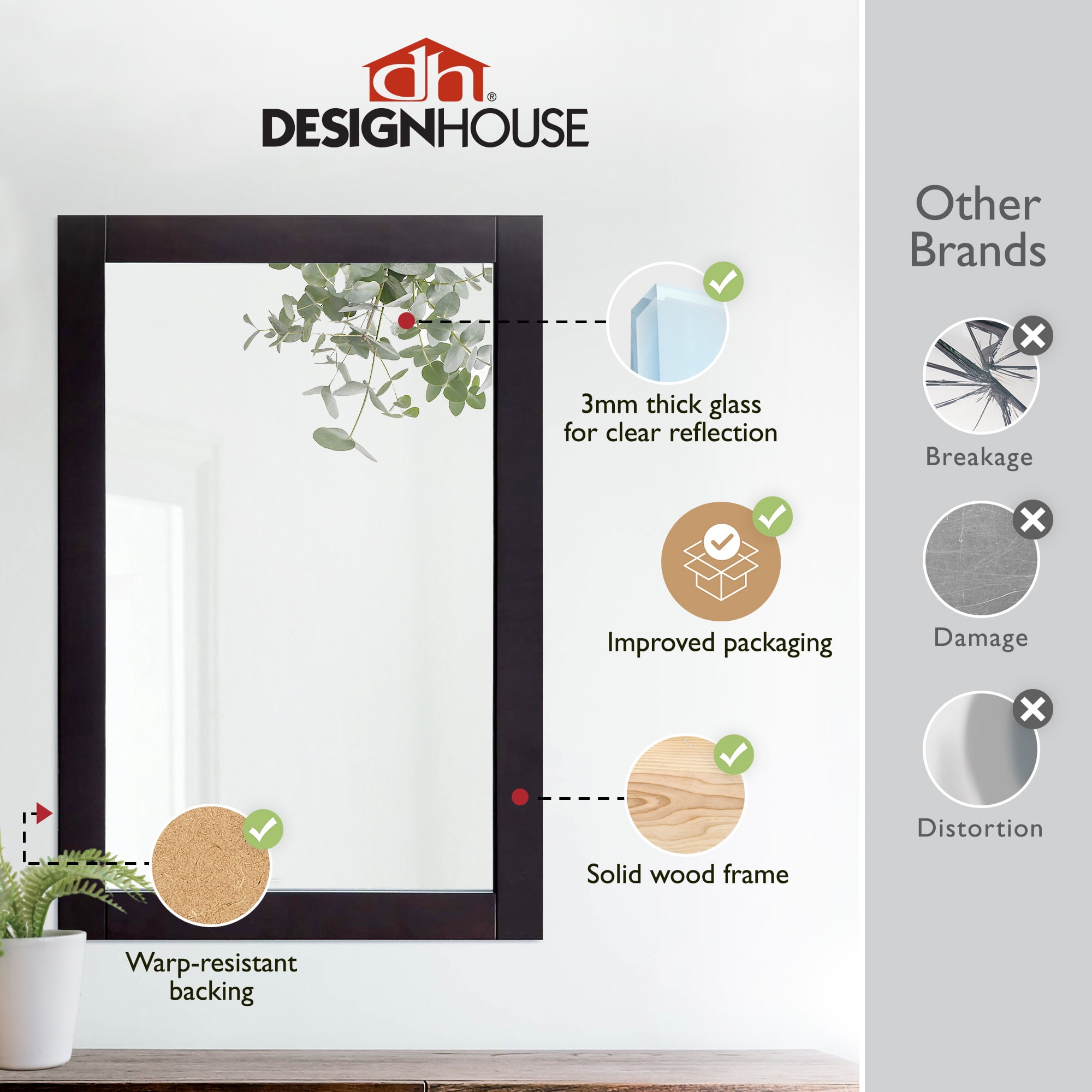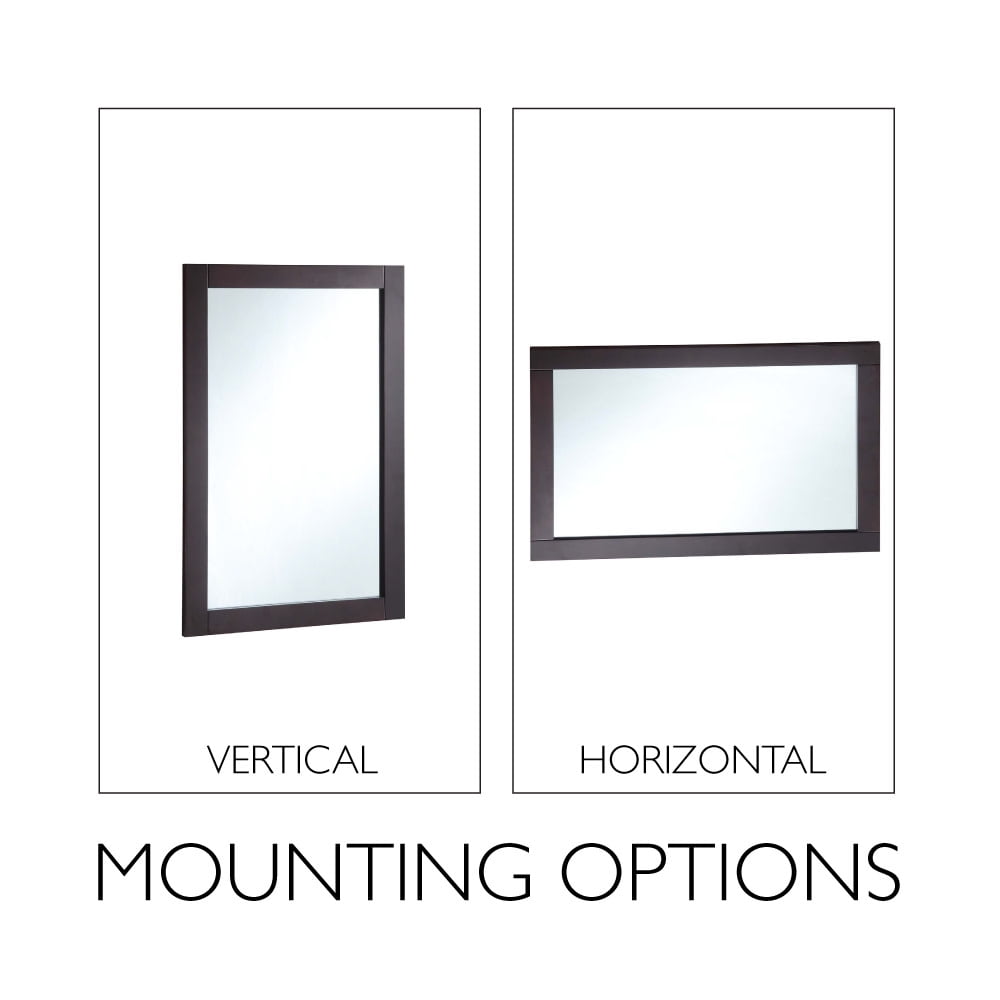 The Design House Shorewood 30-Inch Rectangle Wooden Espresso Wall Mirror is the essential piece for all of your daily routines. This espresso wall mount hanging mirror is made of glass and lightweight yet highly durable wood. The mirror is inset within the frame, creating increased depth and dimension to enhance the look of your space. This wall mirror’s minimalist design creates a versatile look you can use as a vanity mirror in bathrooms and bedrooms or as a decorative mirror in entryways, hallways, living rooms, office spaces, hotel rooms, and more. Measuring 30 inches by 20 inches, this traditional decorative mirror is inset within the wooden frame, providing increased depth and dimension that enhances your space. The pine wood frame with an espresso finish is perfect for farmhouse, contemporary, or traditional decor styles. This accent mirror boasts a fully functional design, which you can use to style empty wall spaces, enhance natural light, and create the illusion of more space. This Shorewood mirror includes mounting hardware for a smooth installation process. It is made of medium density fiberboard backing to be more warp resistant compared to a solid wood backing. Ships to your home in improved packaging, ensuring your mirror gets delivered safely without damage. Customer satisfaction has been our priority for 150 years; this mirror comes with a 1-year limited warranty so you can rest assured your purchase is risk-free. Designed and manufactured by Design House, the trusted source for quality lighting, hardware, plumbing, kitchen, and bath products for every taste and budget.