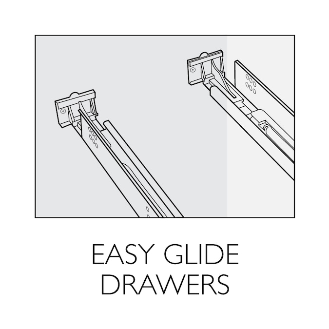 - Plenty of storage for toiletries to keep your countertop free of clutter; drawers are not reversible