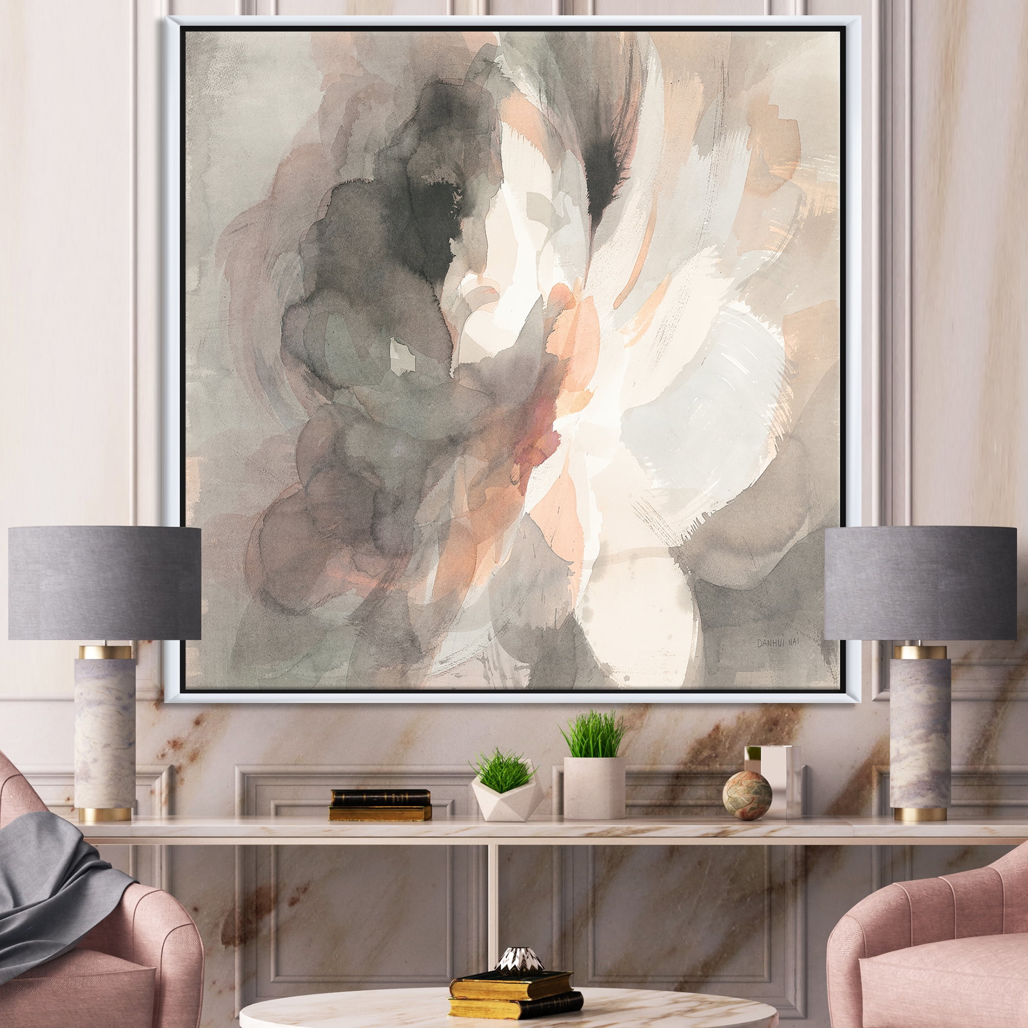 Designart ‘ Abstract Peony Grey ‘ Pink Modern Framed Canvas