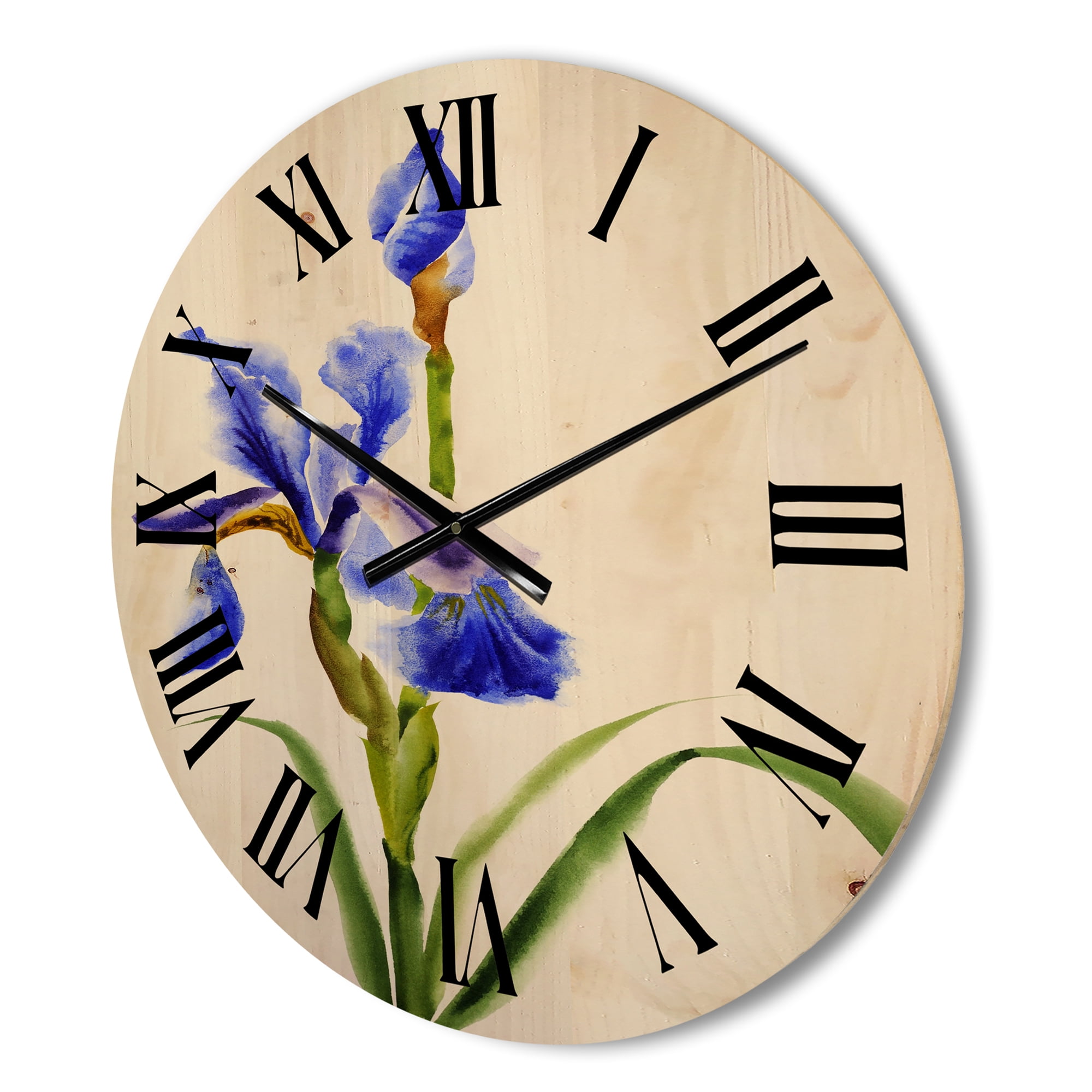 Designart ‘Blue Iris Flower Retro Style’ Traditional Wood Wall Clock