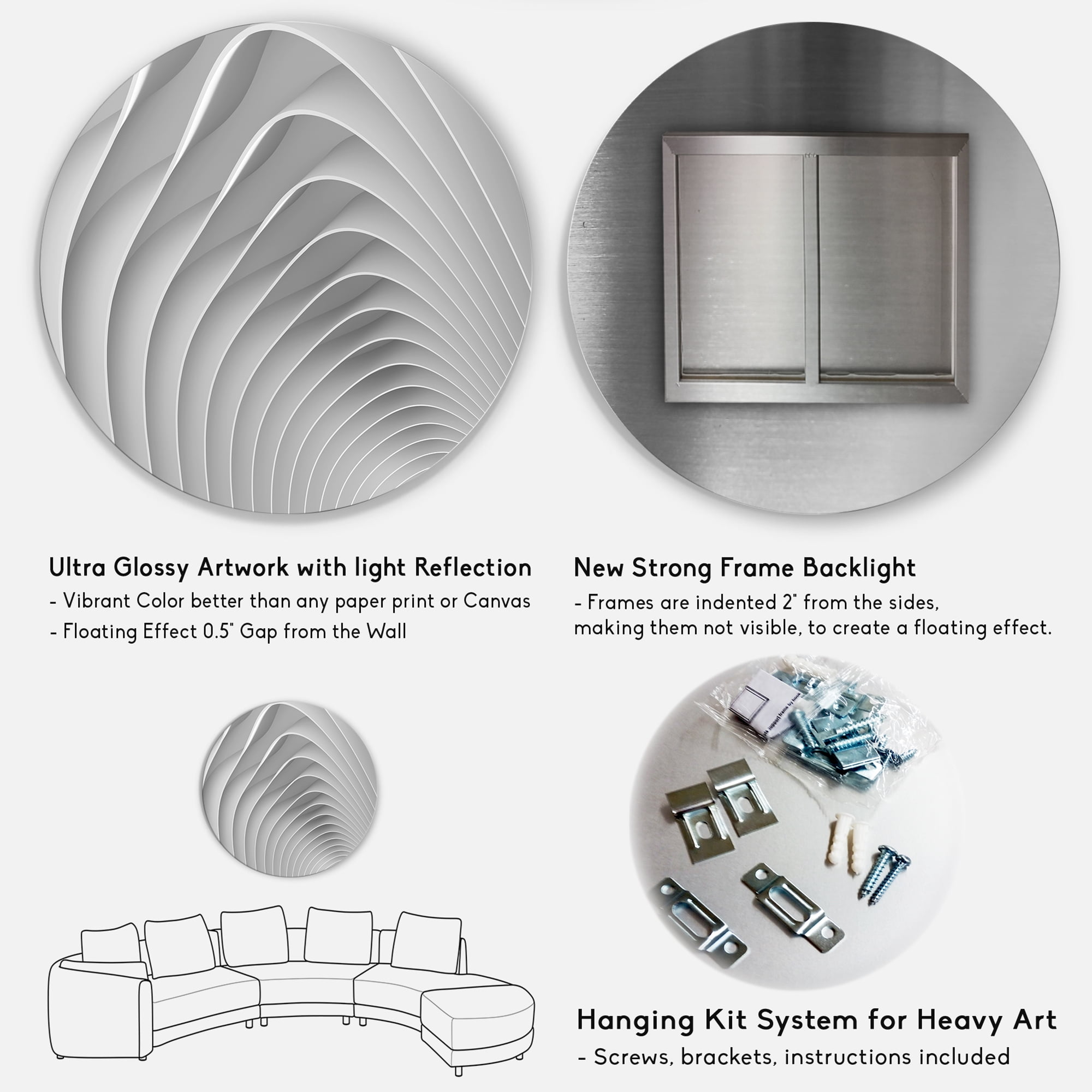 Designart ‘Fractal Bulgy White 3D Waves’ Abstract Circle Metal Wall Art