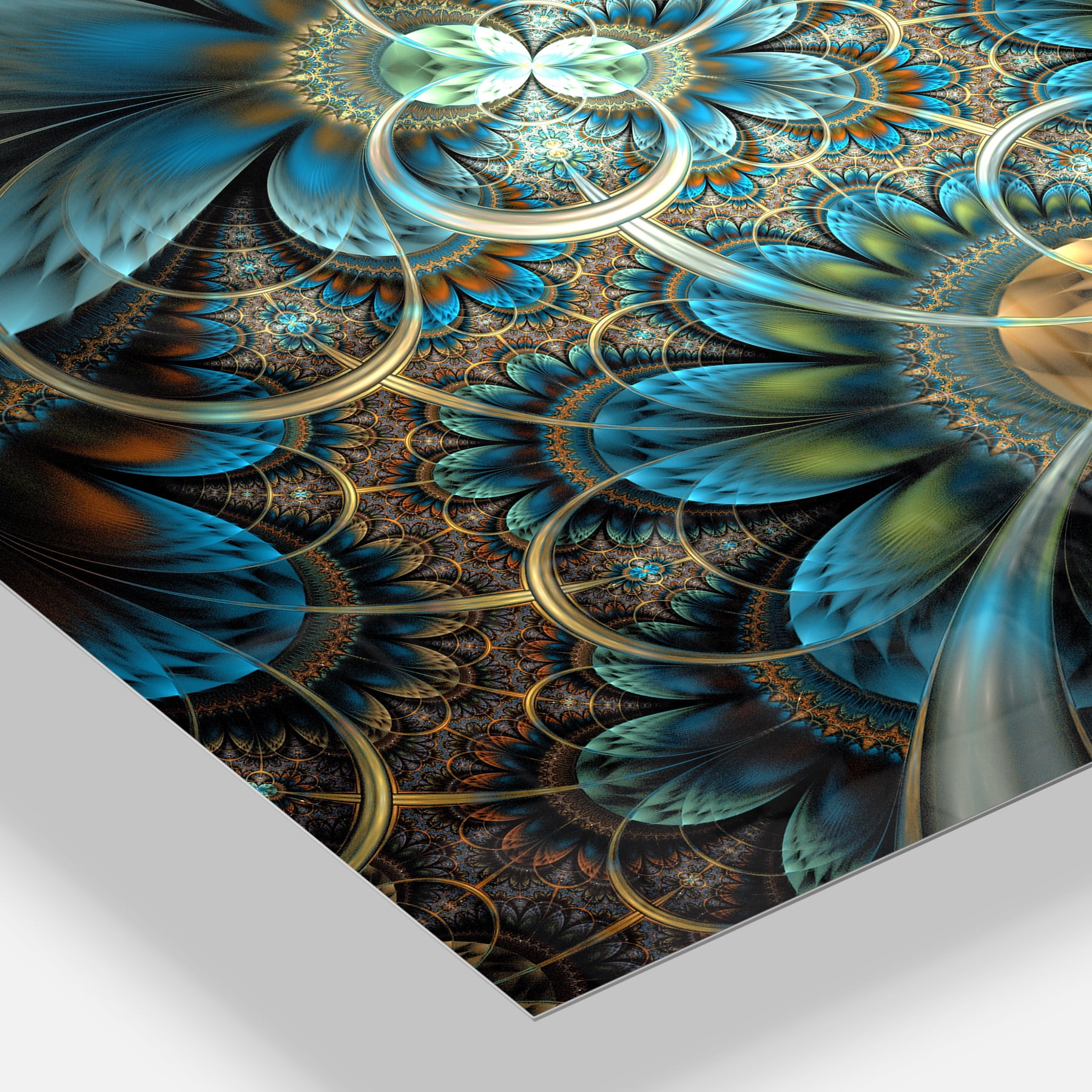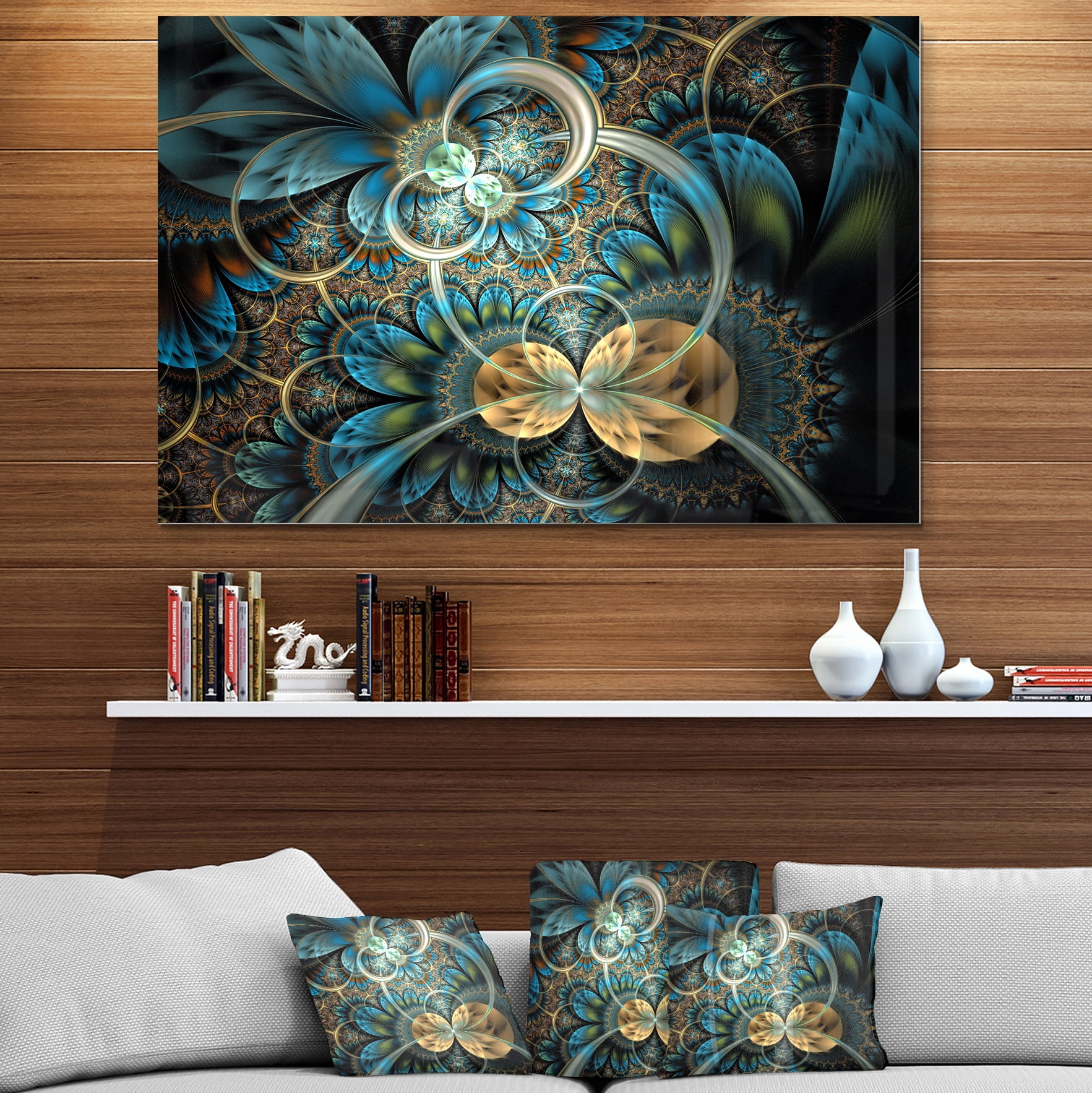 Designart ‘Symmetrical Blue Gold Fractal Flower ‘ Large Contemporary Metal Wall Art Panels