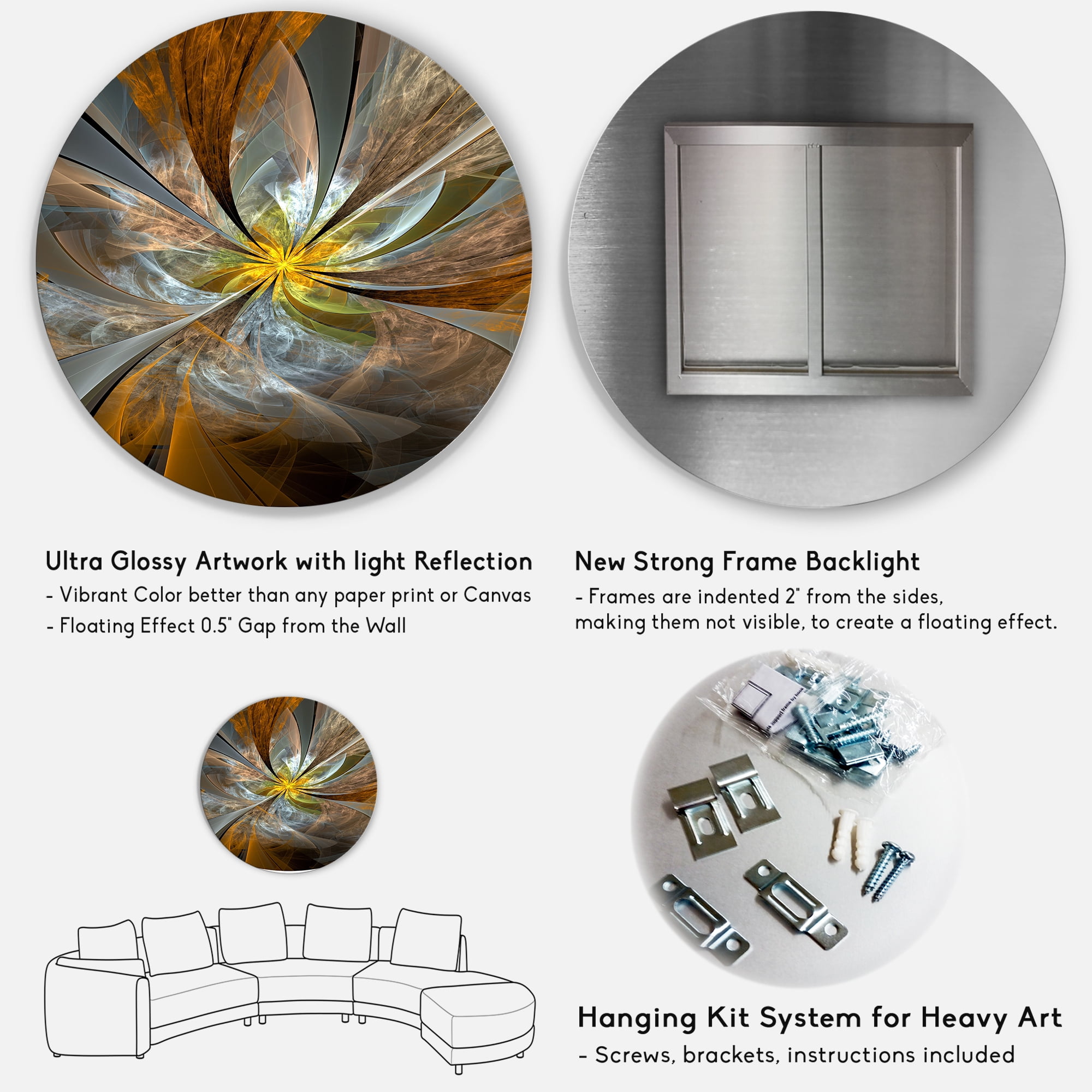 Designart ‘Symmetrical Yellow Fractal Flower’ Disc Large Contemporary Circle Metal Wall Arts