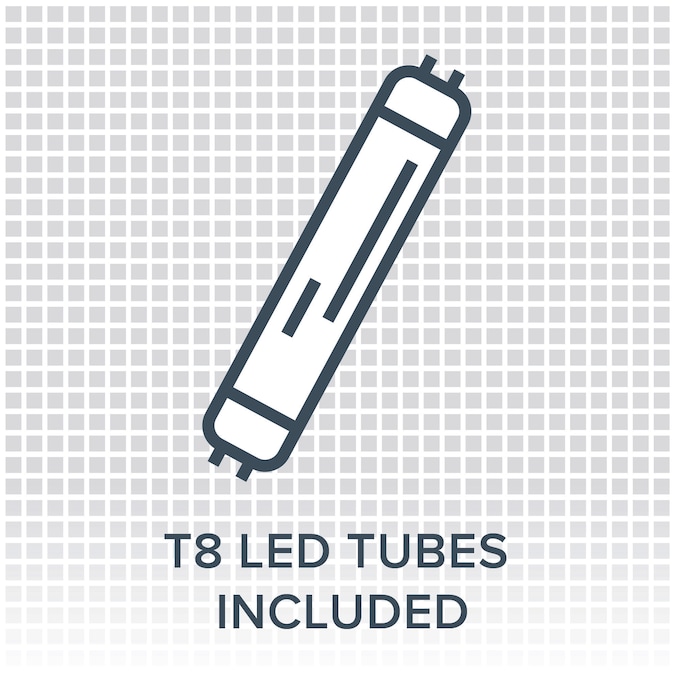 - 4 T8 DLC listed 14W LED tubes (included) uses 56-Watts total, produce 5,000K daylight at 7,200 Lumens
