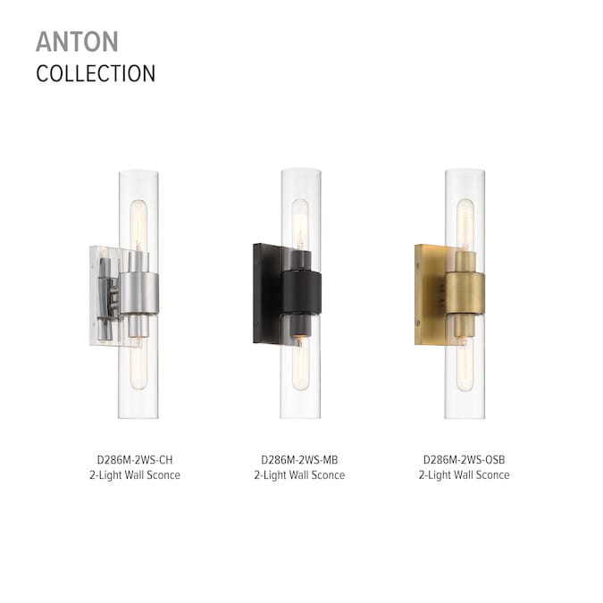 Anton wall sconce by Designers Fountain are a modern classic for nearly any room in your home. These sconces come in three beautiful finishes – shimmering chrome, sleek matte black, and warm old satin brass. With clear glass shades for maximum illumination, you’ll enjoy your Anton fixtures for many years to come.