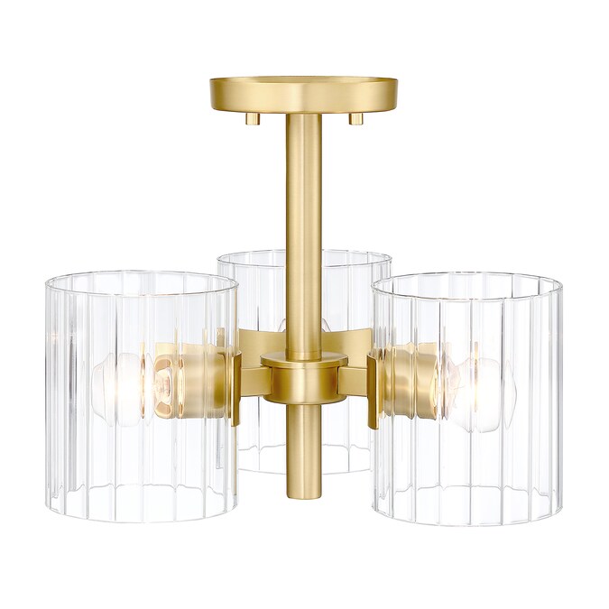 • Transitional semi-flush in Brushed Gold with Ribbed Glass shades