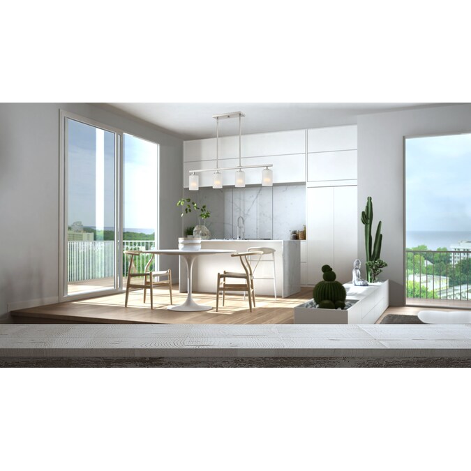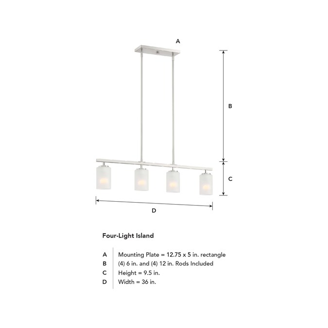 - Brushed Nickel 4 Light Island with etched glass is part of the Carmine collection
