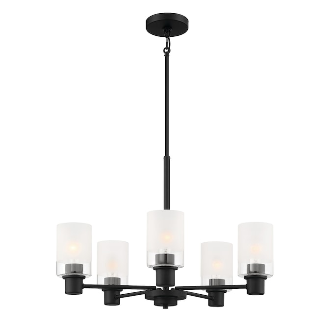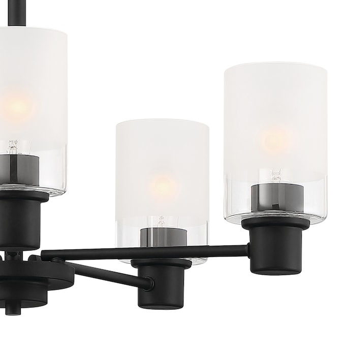 - Matte Black 5 Light Chandelier with clear and etched glass is part of the Cedar Lane collection