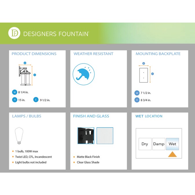 - Fixture dimension: 8.25-in W 15-in H 8.5-in D