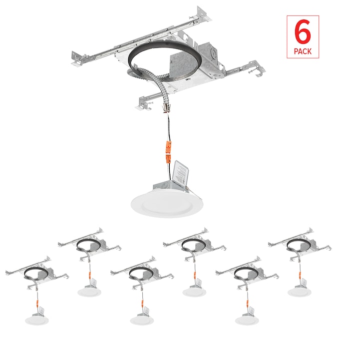 The Designers Fountain DRF6WH9105CMP-6 6-pack of Integrated LED white Recessed Lights is the perfect solution for residential and commercial applications. This canless downlight produces 1,000 Lumens of light with 5-color temperature (CCT) selections: warm 2700K, soft 3000K, neutral 3500K, bright 4000K and a 5000K setting that is close to daylight. It is ETL certified for installation in dry or damp indoor areas and is listed by ENERGY STAR and compliant with California Title 24 for rebates that may be available in the area. Includes steel mounting frame for precise ceiling layout prior to wiring canless downlight. Backed by a 5-year limited manufacturer’s warranty and a 50,000-hour expected lifespan, Designers Fountain’s DRF6WHWH9105CMP-6 is a rock-solid option for new construction or remodel applications.