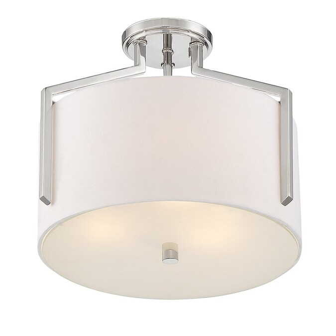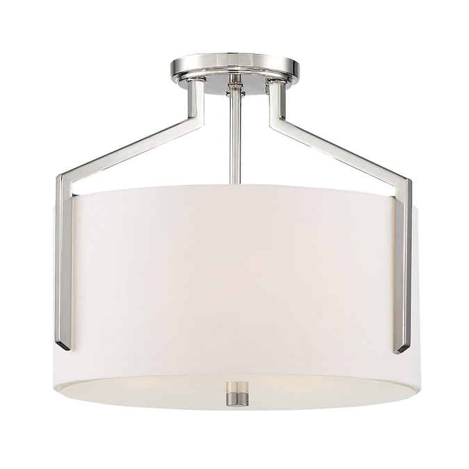 - Polished Nickel Semi-Flush with White Linen + Etched Diffuser shade ideal for today’s interiors