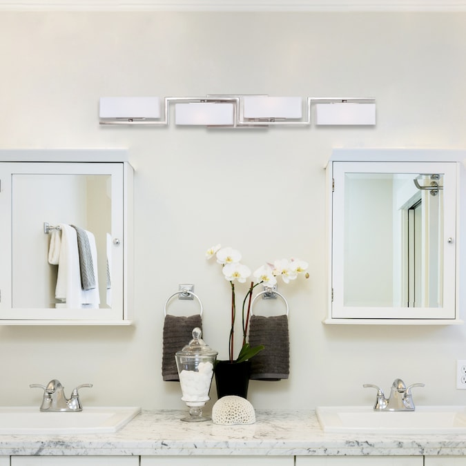 • Contemporary/modern bathroom vanity light with opal glass shades