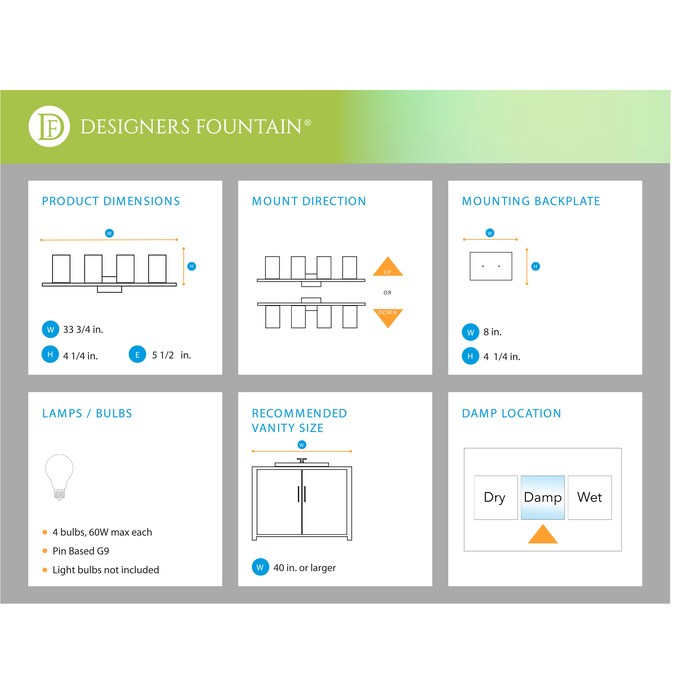 Designers Fountain Meridian 33.75-in 4-Light Satin Nickel Modern/Contemporary Vanity Light