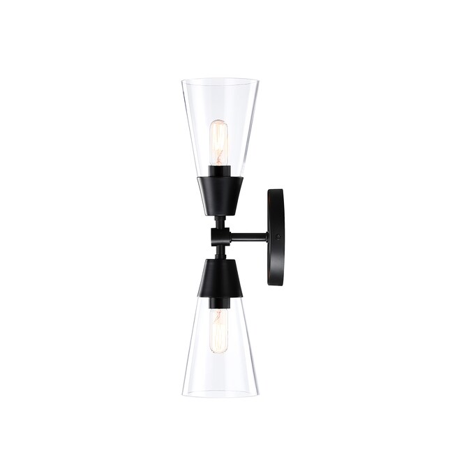 - Modern wall sconce in Matte Black with Clear Glass shades