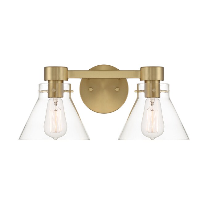 - Contemporary vanity in Brushed Gold with Clear Glass shades