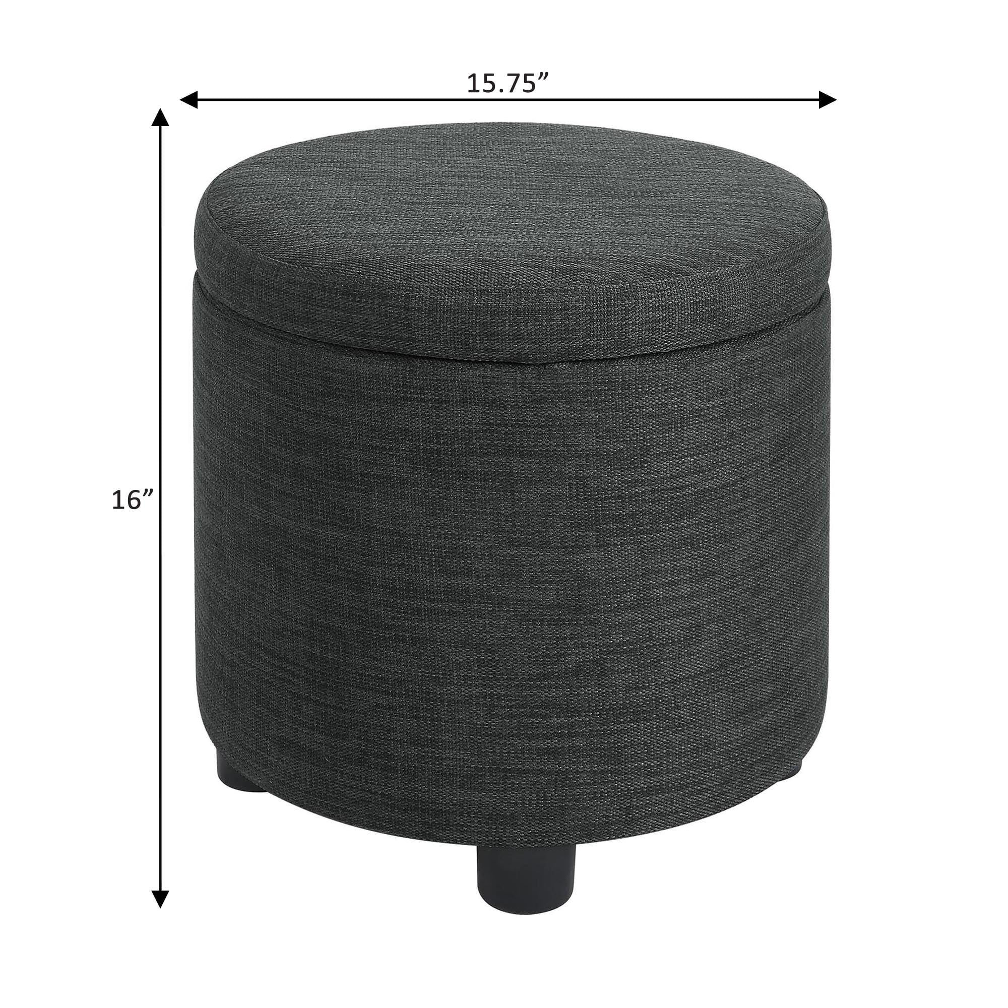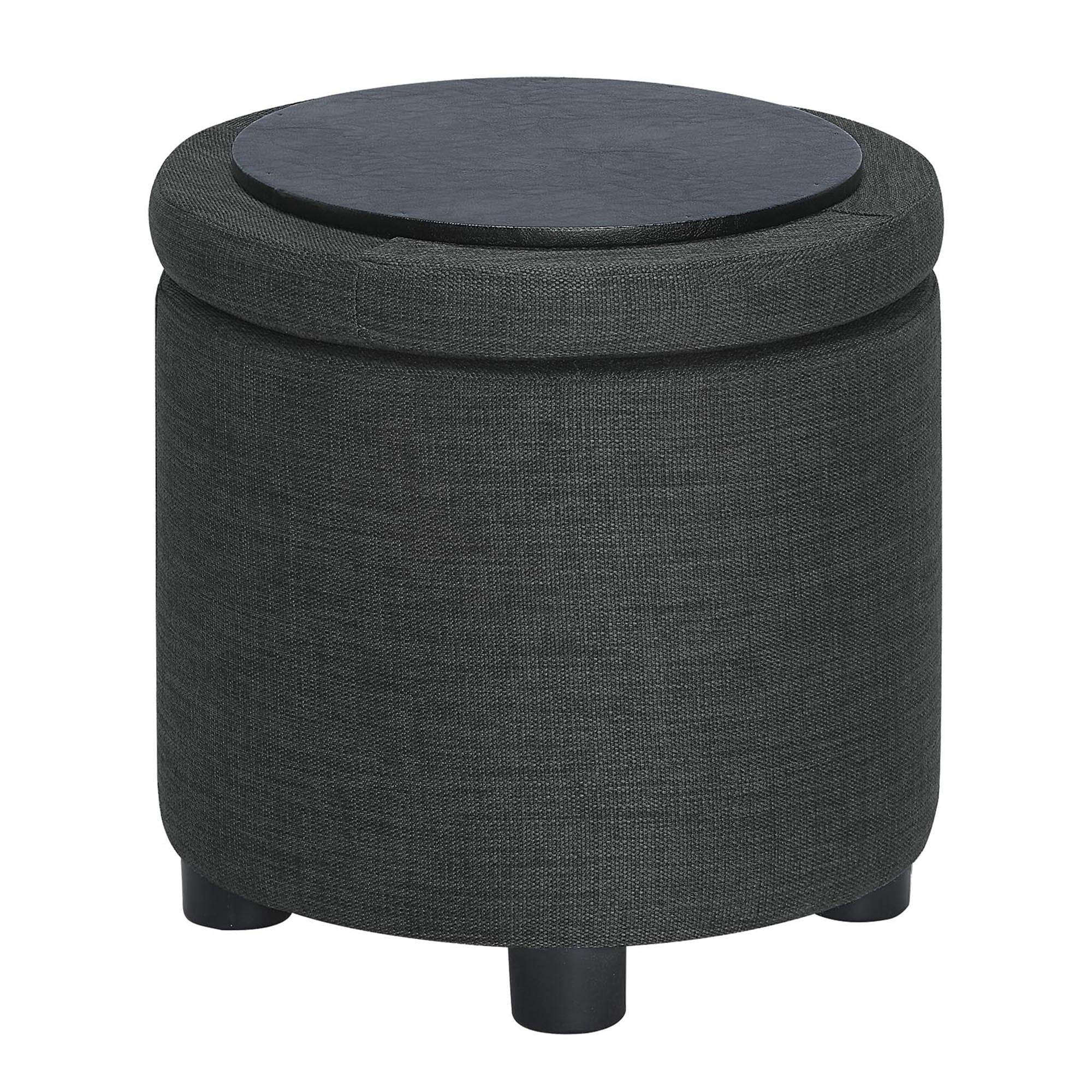 Designs4Comfort Round Accent Storage Ottoman with Reversible Tray Lid, Dark Charcoal Gray Fabric