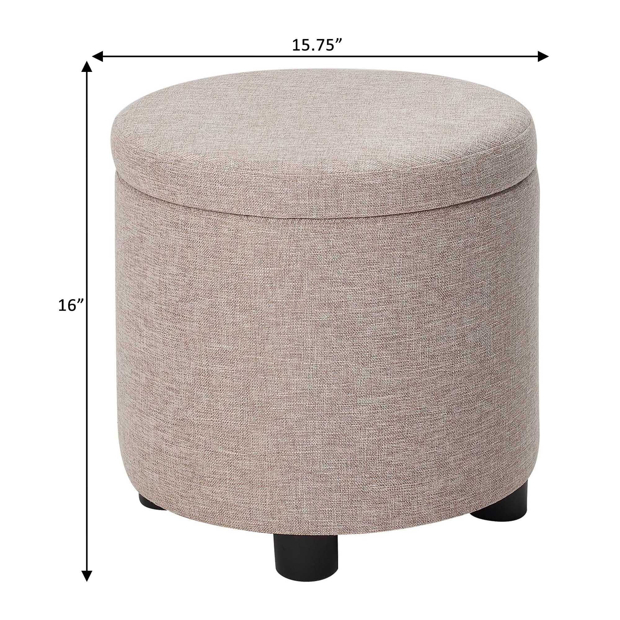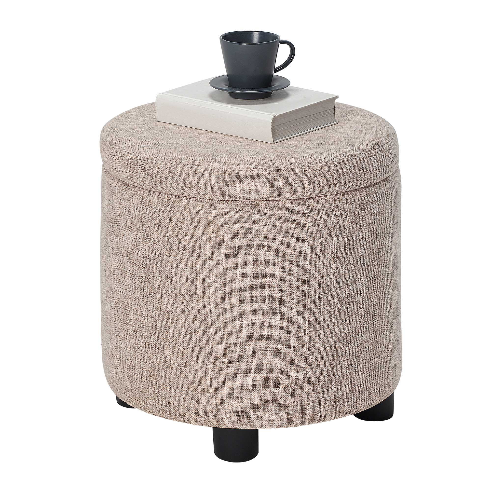 Designs4Comfort Round Accent Storage Ottoman with Reversible Tray Lid, Tan Fabric