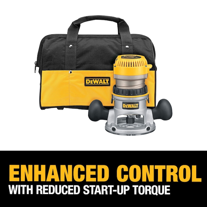 The DW618K 2-1/4 HP EVS Fixed Base Router Kit with Soft Start has a powerful motor for routing through tough hardwood at the user’s desired speed. Features precise depth adjustments and fast, easy motor pack removal for bit and base changes.