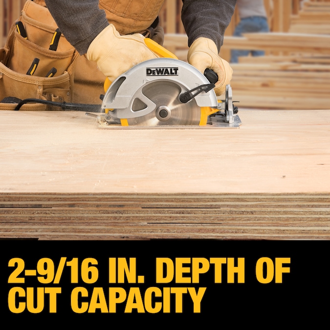 The DWE575 7-1/4-In lightweight circular saw is among the lightest saws in its class at only 8.8 lbs. 15 Amp motor is powerful enough for the toughest applications. Bevel capacity of 57 degrees and 2-9/16-In depth of cut capacity provide versatility.