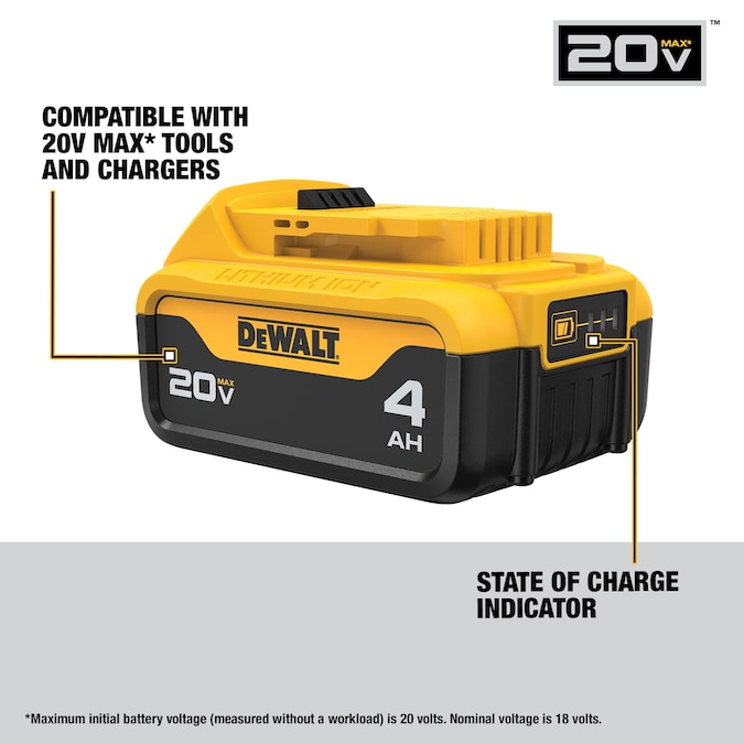 - PART OF THE 20V MAX* SYSTEM – This battery is compatible with 20V MAX* tools and chargers
